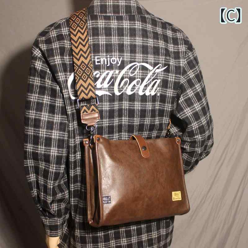 ショルダーバッグ レトロ レザー 大容 バッグ 小物 ブランド雑貨 早い者勝ち A:ライトブラウン(柄紐) B:ブラック(柄紐) C:ダークブラウン(柄紐) D:ライトブラウン(レザー紐) E:ブラック(レザー紐) F:ダークブラウン(レザー紐) G:ライトブラウン(2種類紐) H:ブラック(2種類紐) I:ダークブラウン(2種類紐)