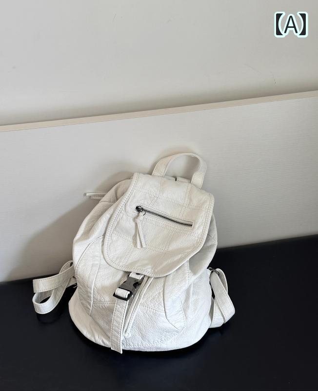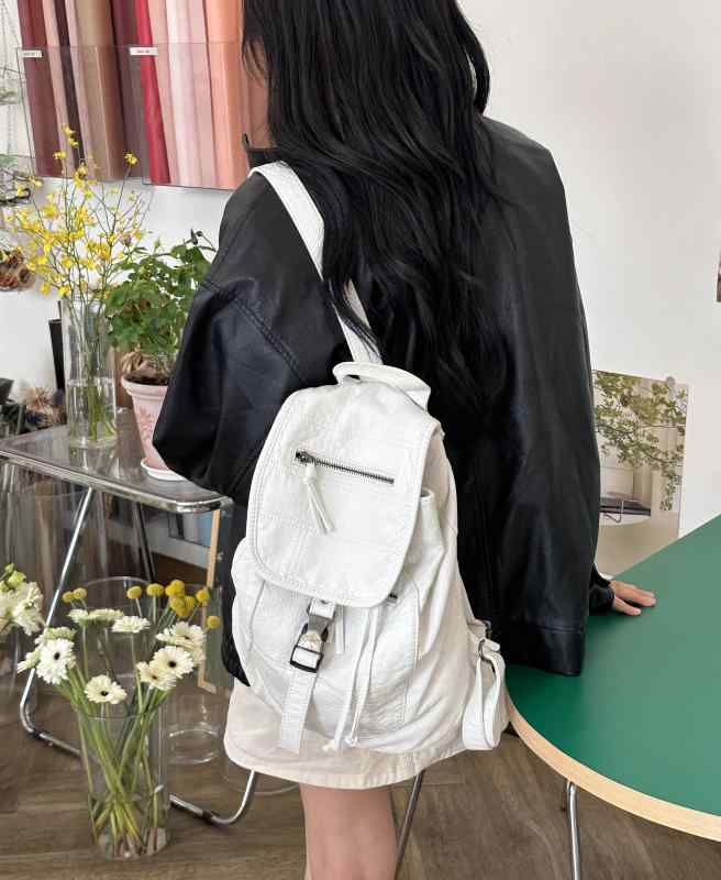 リュックサック ウォッシュドレザー 黒 白 きれいめ リュック シワ加工 ソフトレザー 大容量 韓国系 オシャレ 高級感 かぶせ アメリカン ブラック ホワイト セレブ 無地 ハイセンス バッ 高見え
