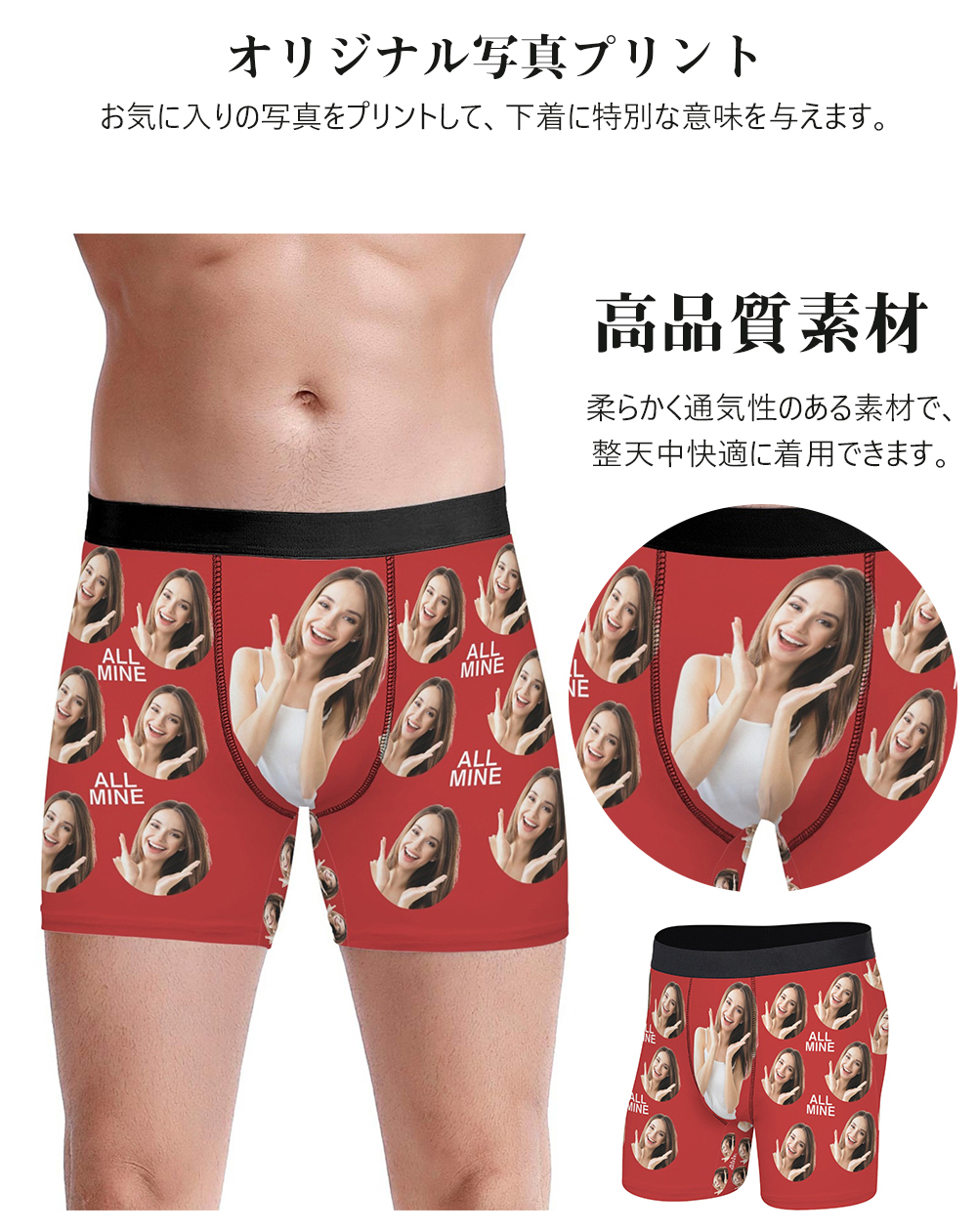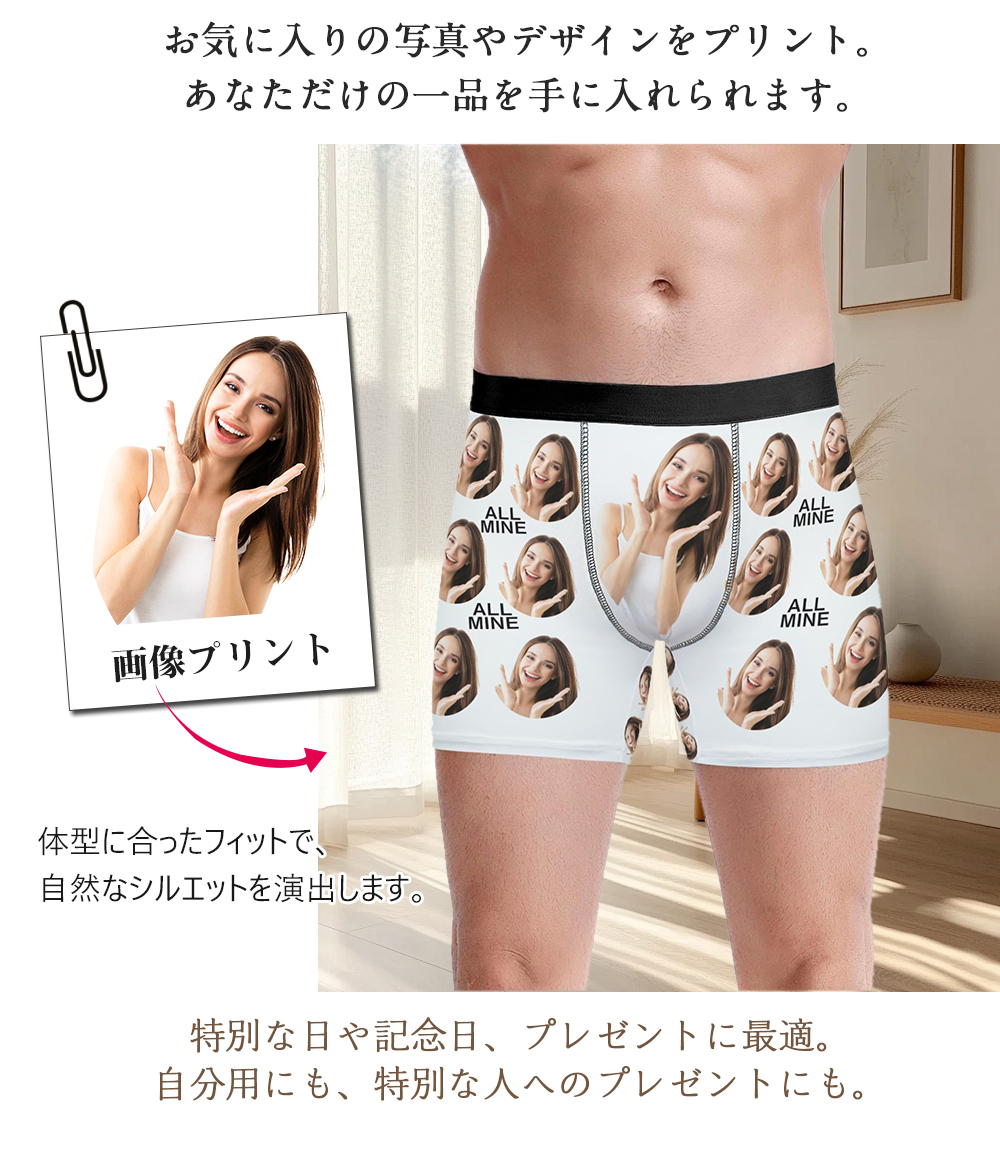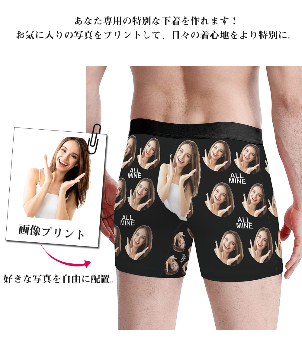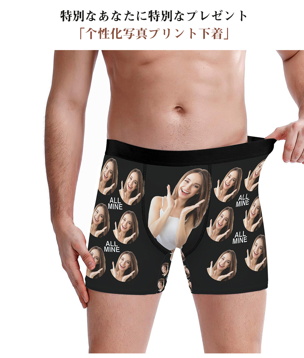 オリジナル ボクサーパンツ 名入れ 写真入りパンツ 写真パターンのメンズ下着 通気性快適ストレッチボクサートランクス スポーツショーツ