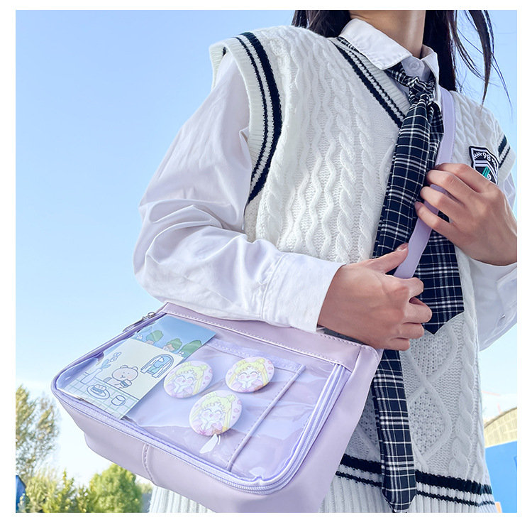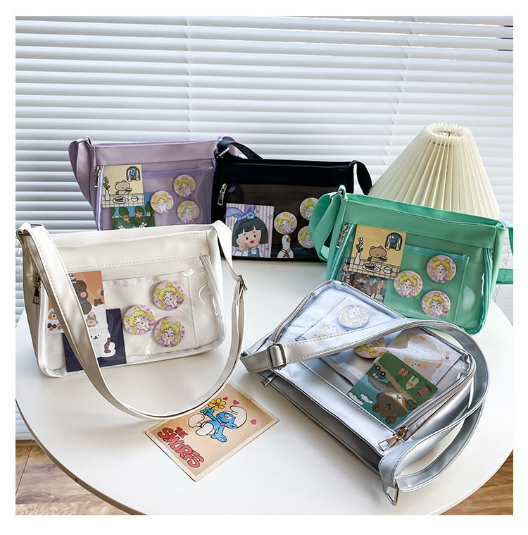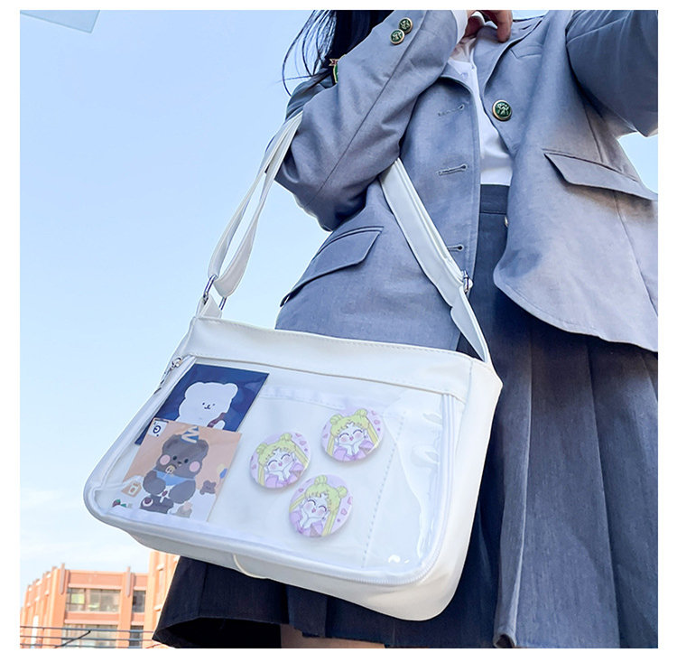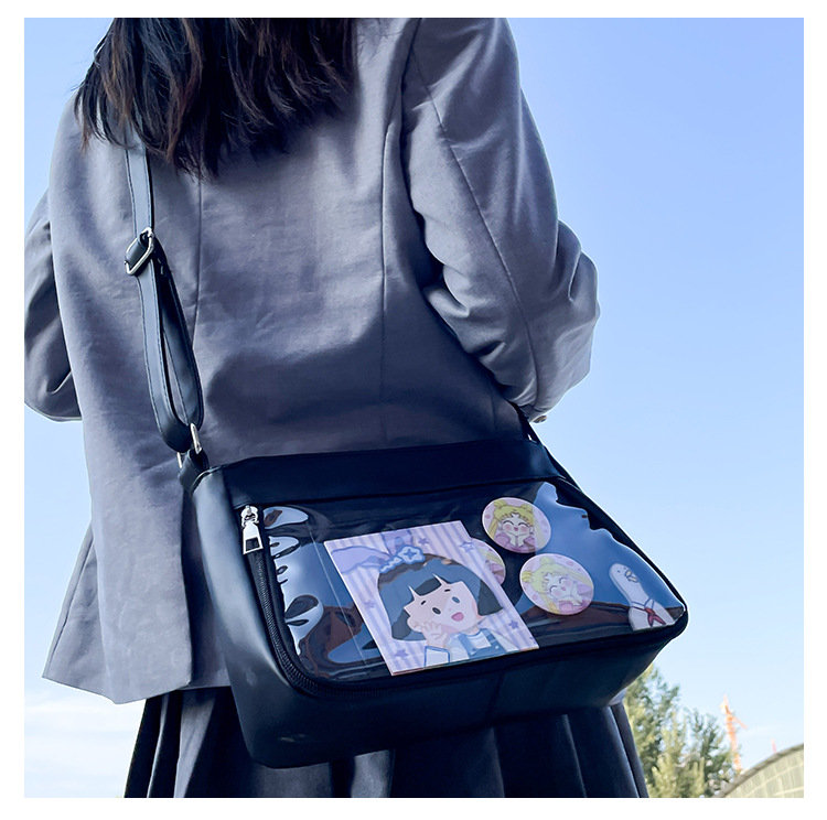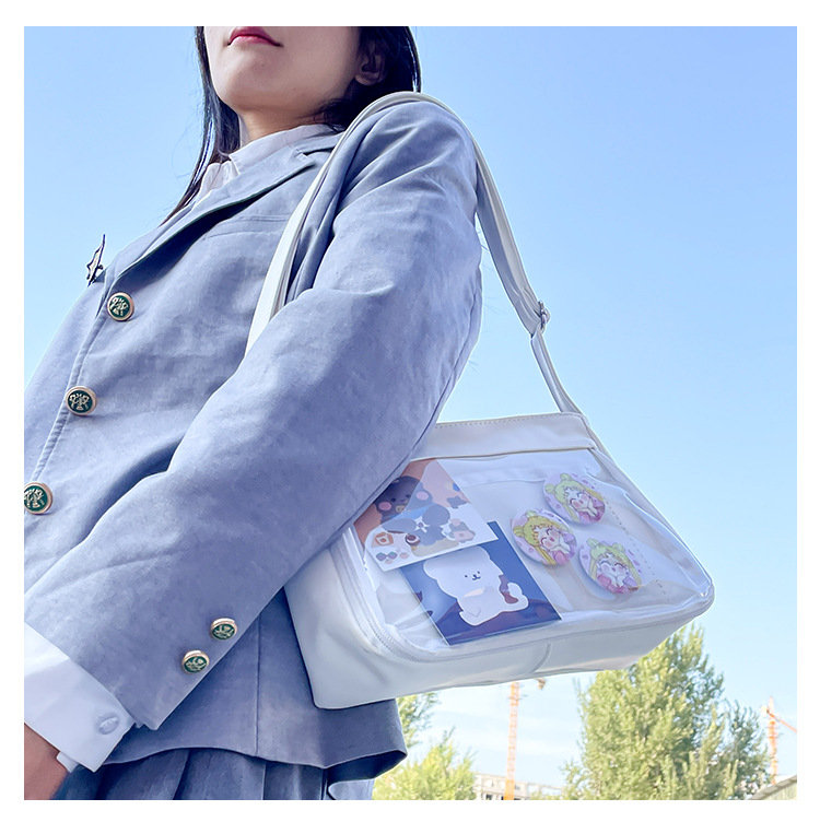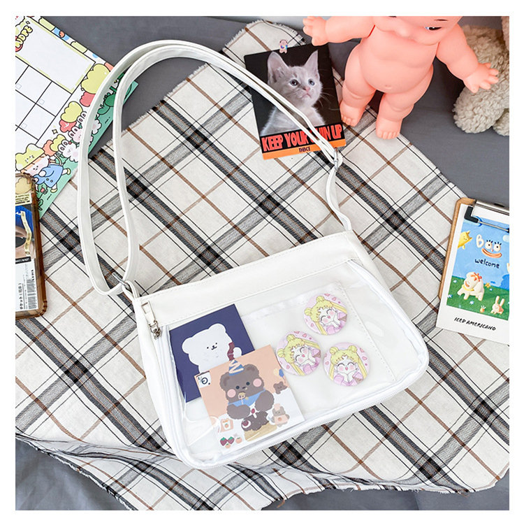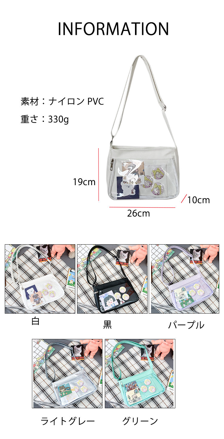 痛バッグ ショルダー 痛バ 推し活バッグ イベント 小さい 小さめ バッグ ガールズ 推し活 イベント 透明バッグ 見せバッグ シンプル 推し ビニールバッグ クリアバッグ オタク活 オタクバッグ 透明窓 デコバッグ ビニール 無地 シンプル おしゃれ バッグ カバン前の透明カバーに飾り板が入っていて、自分の好きな小物を入れることができるバッグです。 好きな芸能人や、アニメの写真 、缶バッジ、ストラップ、ぬいぐるみ、キーホルダーなどを入れるだけで、世界一つだけ自分のバッグです、毎日楽しく使える。