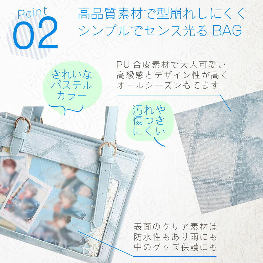 痛バッグ おしゃれ トート 痛バ ショルダーバッグ メンズ 透明 トートバッグ 2way ファスナー 水色 いたばっく 痛バック 缶バッチ ぬいぐるみ 小さめ 安い オタ活 推し活 ヲタ活 推しカラー 推し色 クリアバッグ 肩掛け レディース