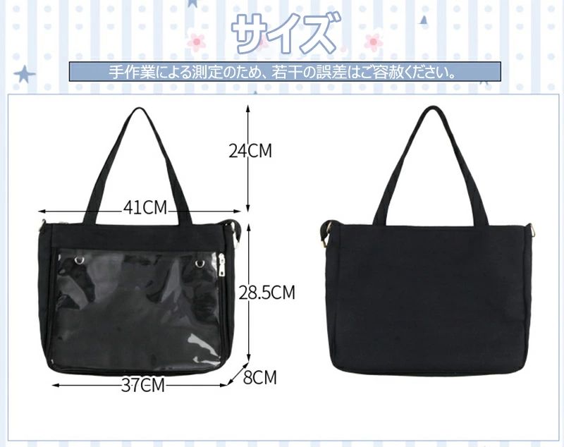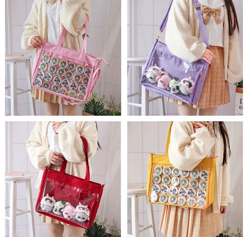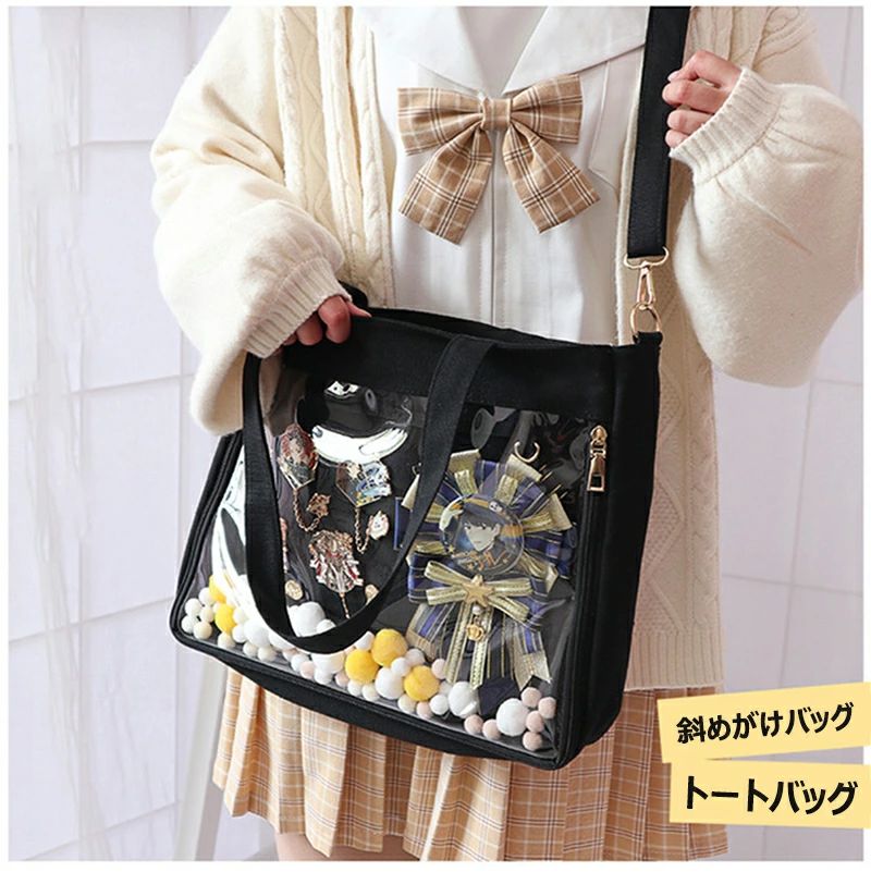 痛バッグ ショルダー トート A4 痛バ ショルダーバッグ 2way 赤 透明 トートバッグ ファスナー イエロー 大きめ パープル 水色 いたばっく 痛バック 缶バッチ ぬいぐるみ 小さめ 安い