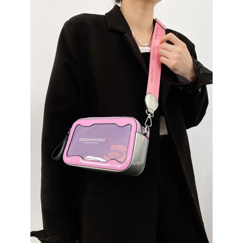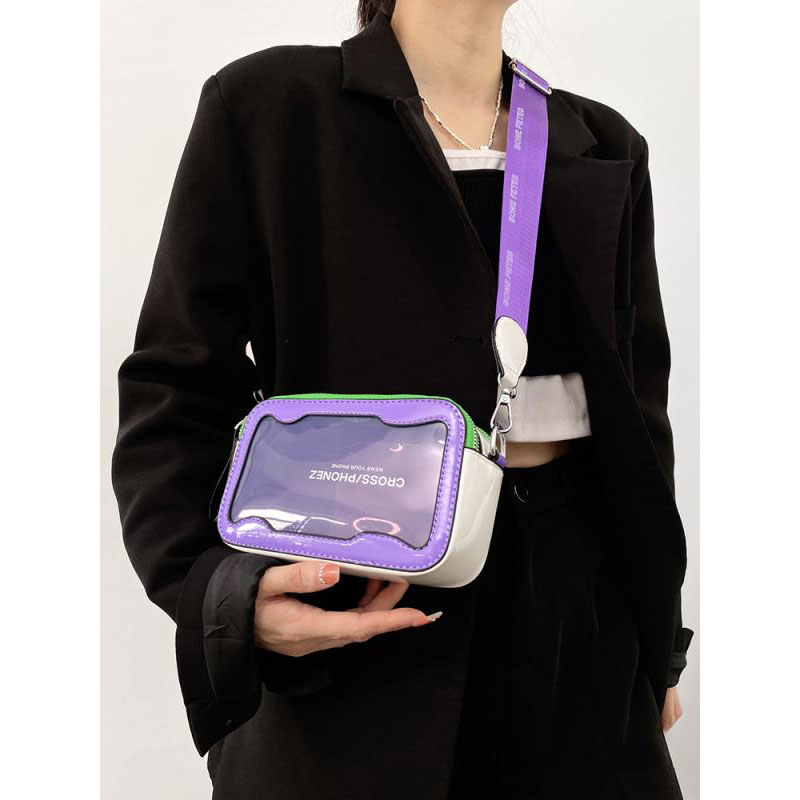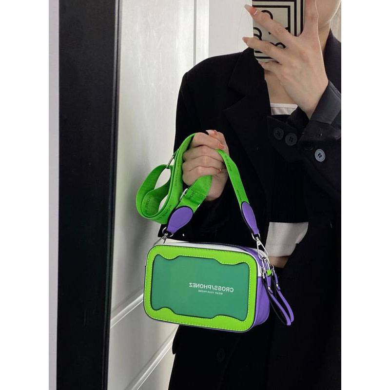 斜めがけ 肩がけ バック 紫 緑 黒 ピンク カラフル 四角 スクエア型 ミニ バッグ クロスボディ ボディバッグ メッセンジャーバッグ