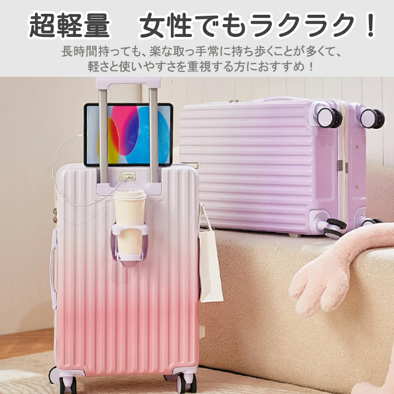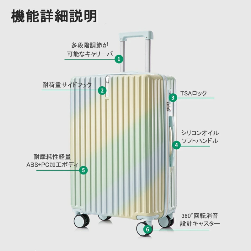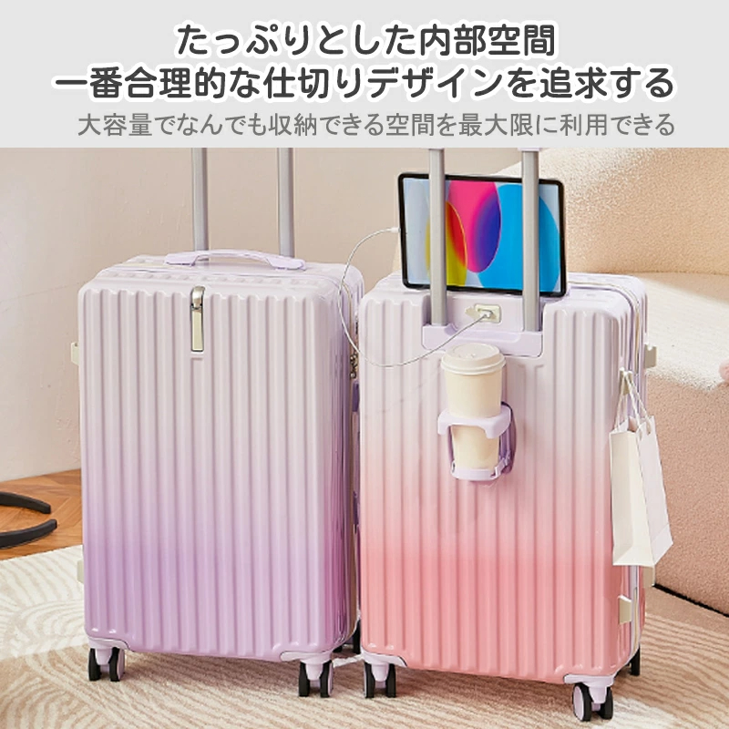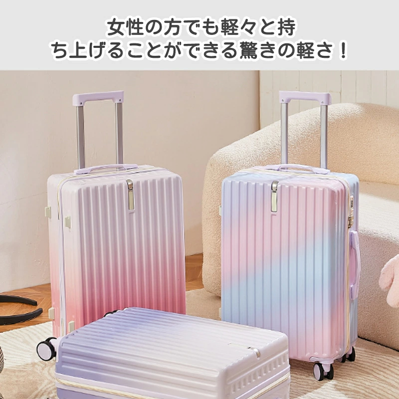 スーツケース グラデーション キャリーケース 小型 中型 大型 ファスナー ダブルキャスター サスペンション 耐衝撃 暗証番号コード パーテーション 旅行 機内持込可 乗り物 旅行