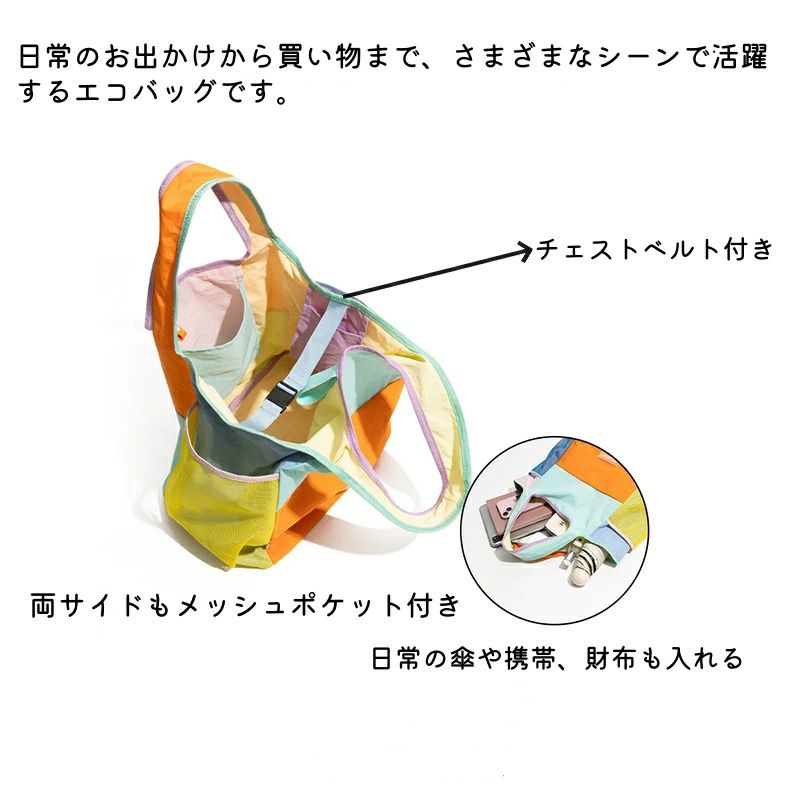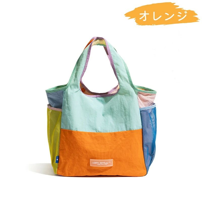 トートバッグ エコバッグ 軽い カラフル 明るい 折りたたみ バッグ レジ袋 レジバッグ 買い物バッグ おしゃれ コンビニ 袋 マイバッグ パステルカラー 畳める 収納 マチあり 無地 小物入れ パッチワーク 日常使い 散策 お出かけ 弁当袋 撥水加工 便利サイズ