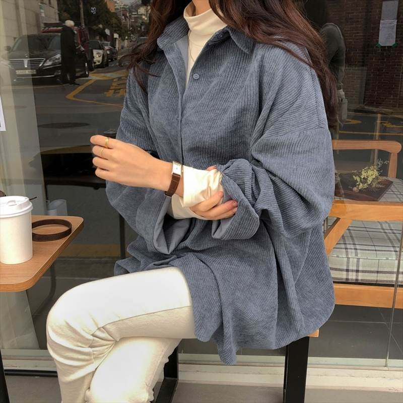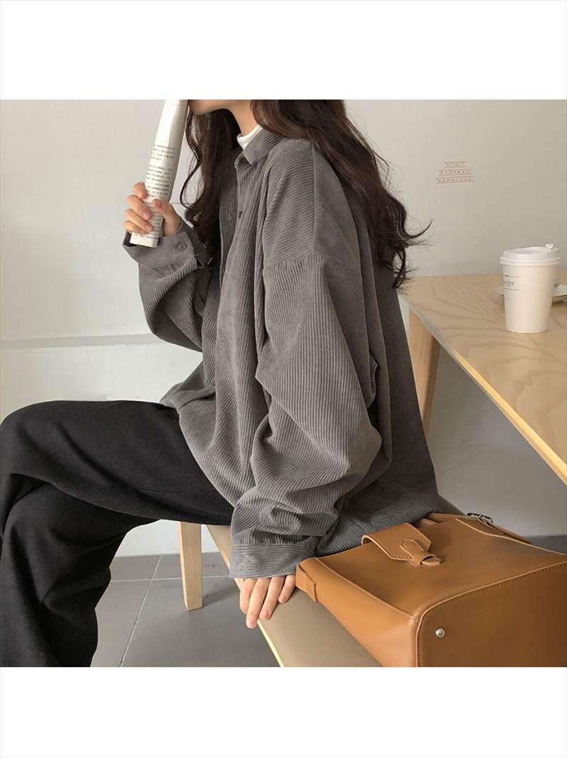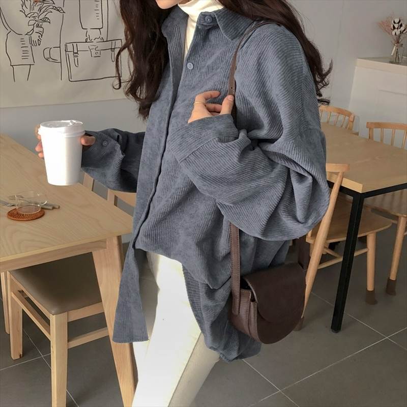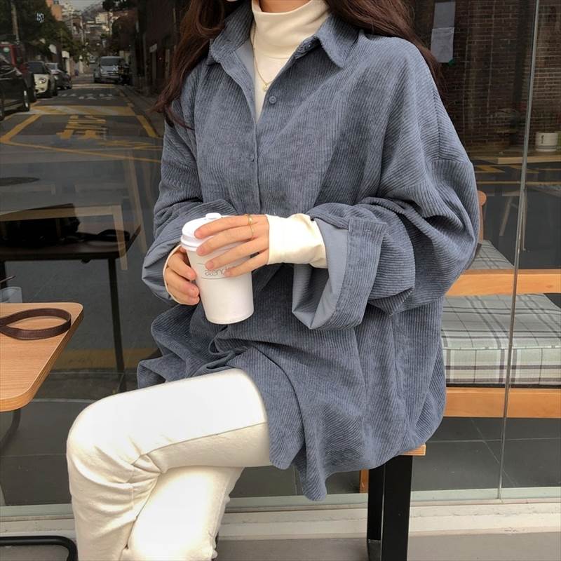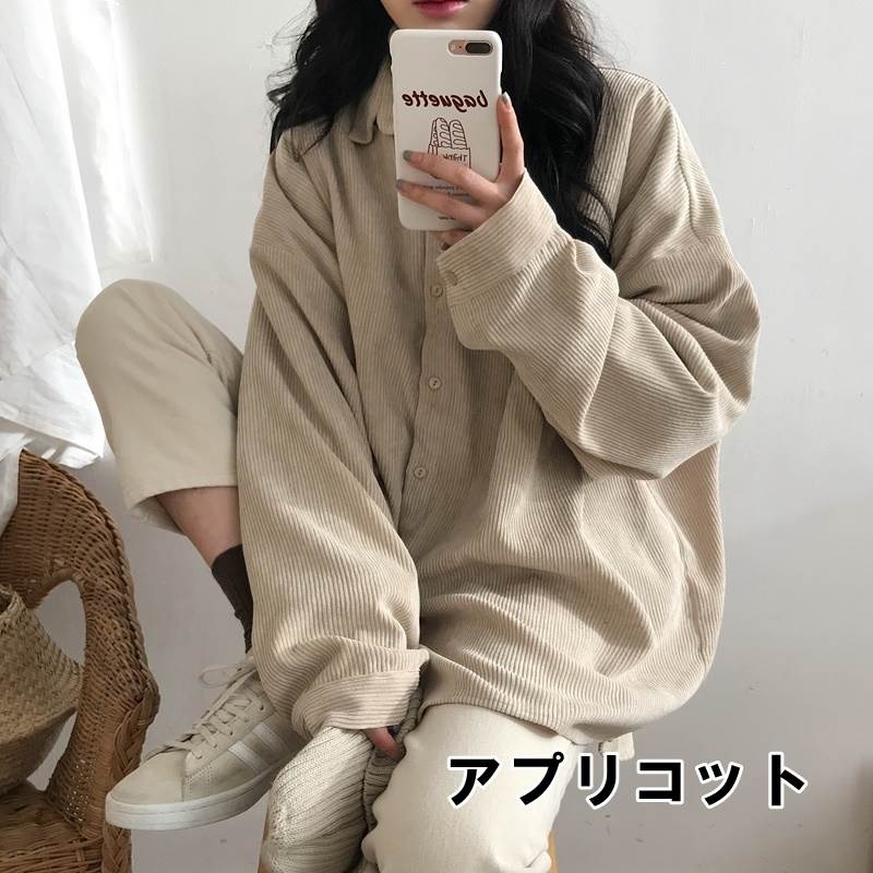 3色 コーデュロイ シャツ アウター トップス シャツ ブラウス 超目玉商品 グレー アプリコット ブルー