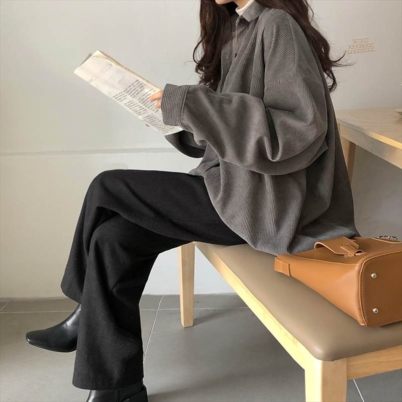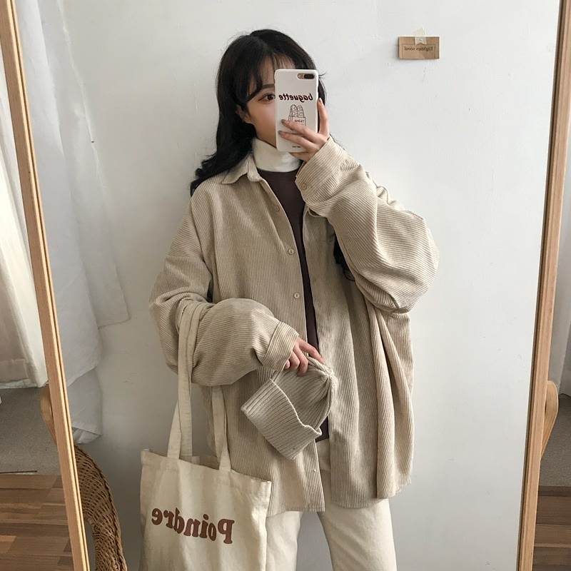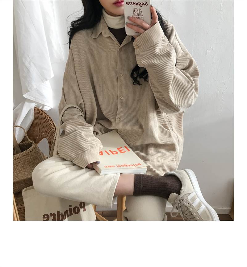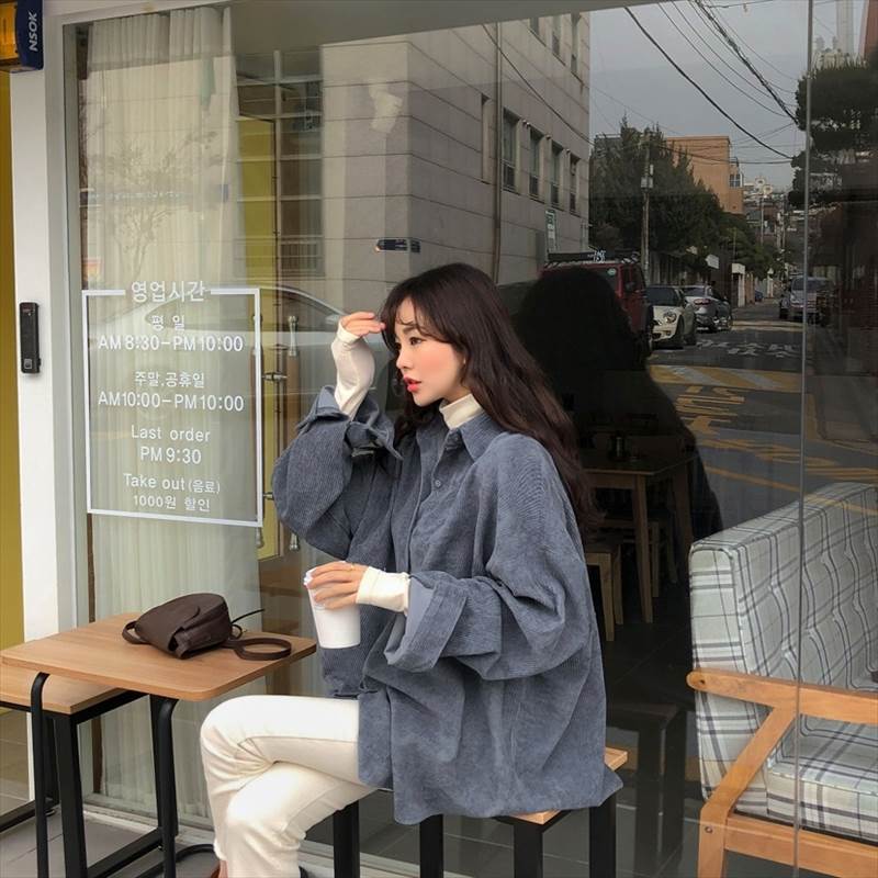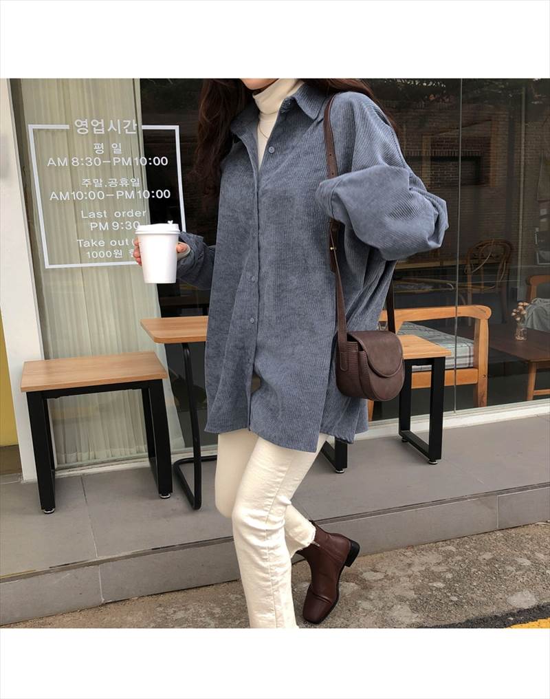 3色 コーデュロイ シャツ アウター トップス シャツ ブラウス 超目玉商品 グレー アプリコット ブルー