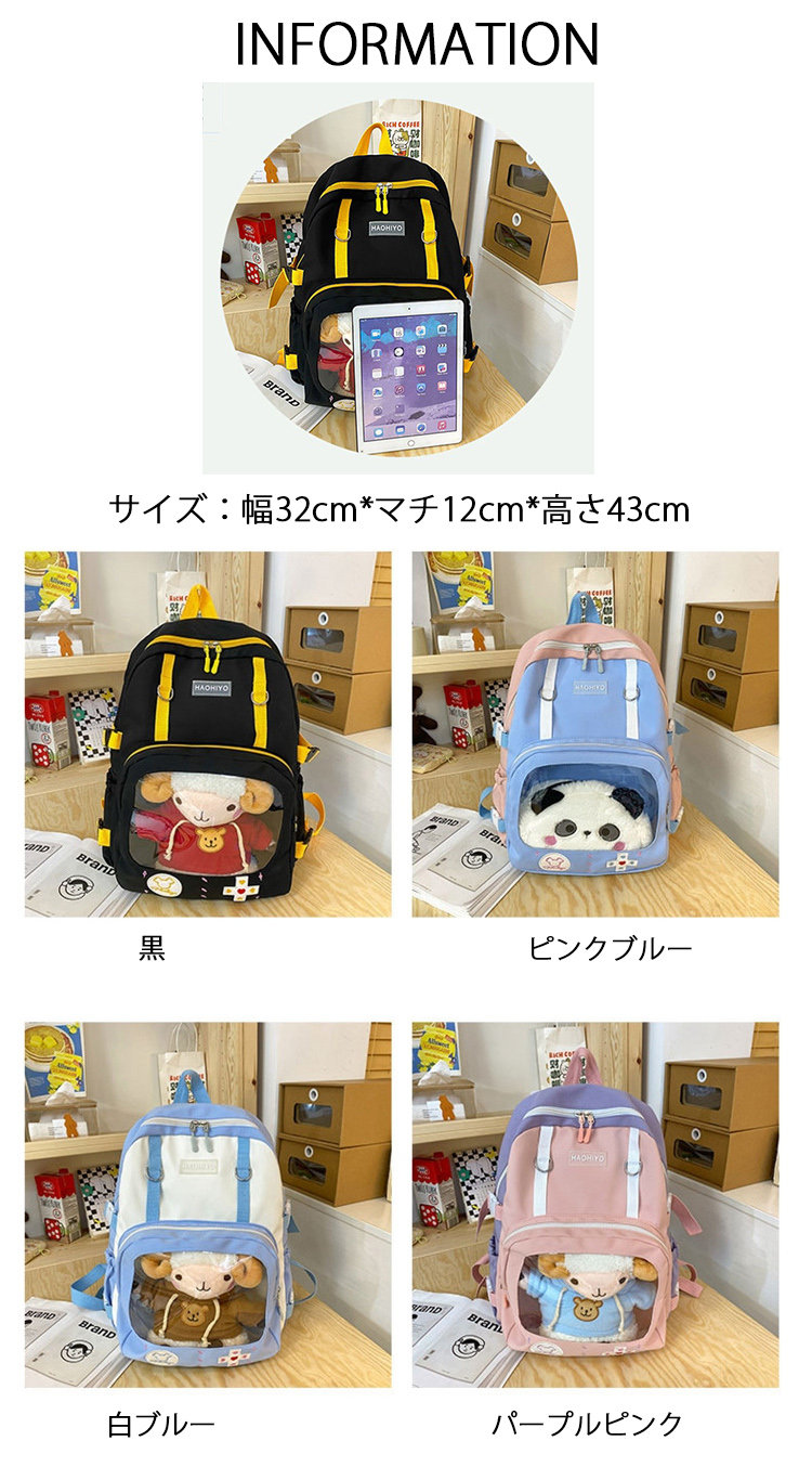 痛リュック a4 痛バッグ 痛バ バッグ 推し 推しバッグ 推し活 推し活バッグ ぬいぐるみ 缶バッチ 可愛 かわいい 大容量 クリア クリアバッグ 透明バッグ 見せバッグ 学生 女子高生 女子 通学