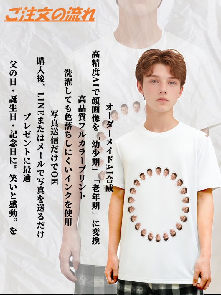 オーダーメイドTシャツ AIアートTシャツ 記念Tシャツ 写真Tシャツ オリジナルTシャツ オーダーTシャツ プレゼント ギフト ユニセックス 過去現在未来 デザインTシャツ オリジナルグッズ 推し活アイテム サプライズギフト ペアTシャツ 感動ギフト 家族Tシャツ カスタムTシャツ AI生成