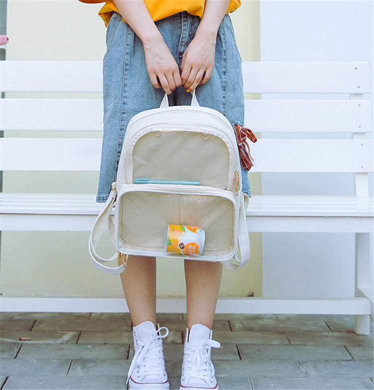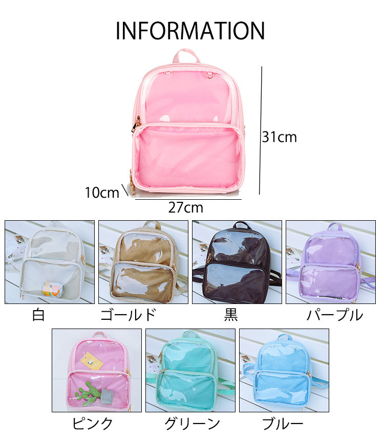 痛バッグ 痛バ リュック レディース バッグ カバン リュックサック バックパック 痛リュック ぬいぐるみ 透明窓 クリアバッグ 透明バッグ デコ デコバッグ おしゃれ シンプル かわいい 可愛い 大容量 軽量 PU 推し 推し活 オタク オタク活 オタバ ガールズ 女子