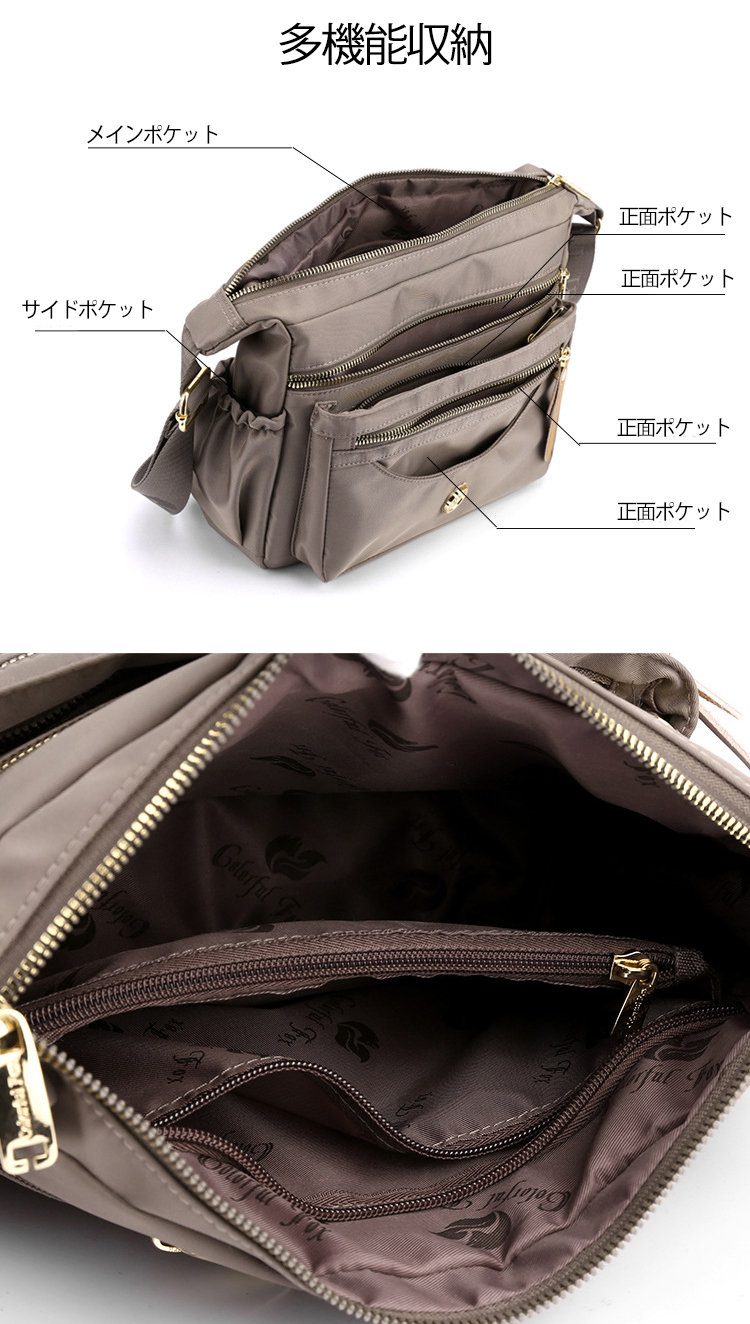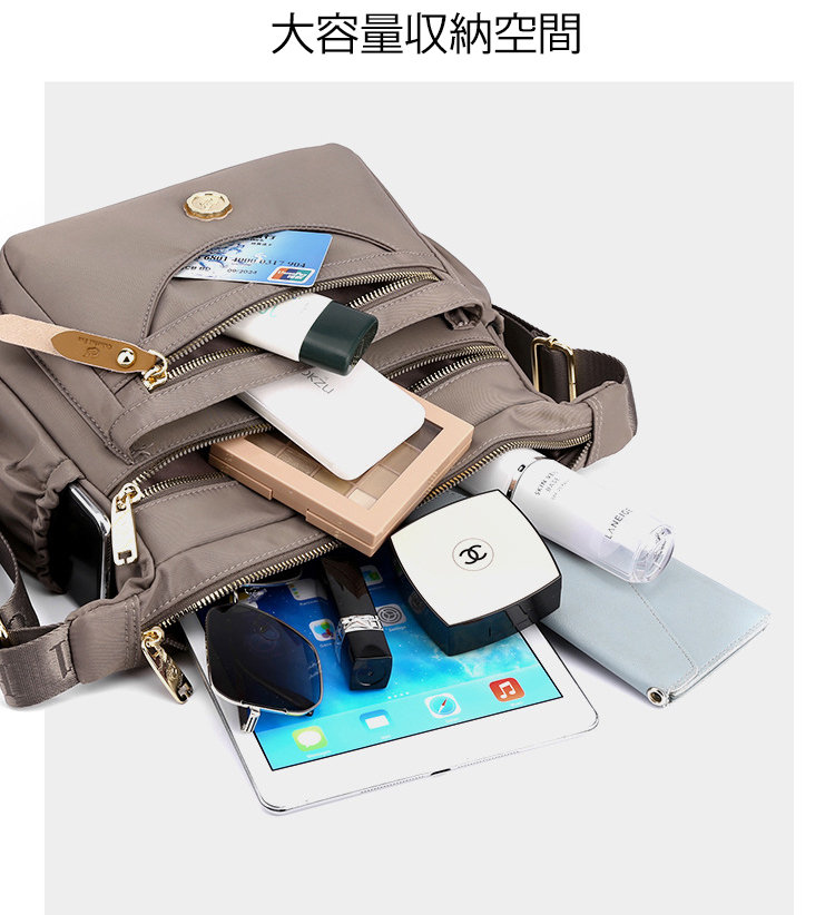 ショルダーバッグ レディース バッグ カバン ショルダー 斜め掛け 軽量 大容量 多機能収納 収納バッグ マザーズバッグ お出かけ 散歩 旅行 便利 小物収納 肩掛け お洒落 ナイロン オー シンプル