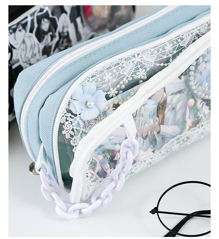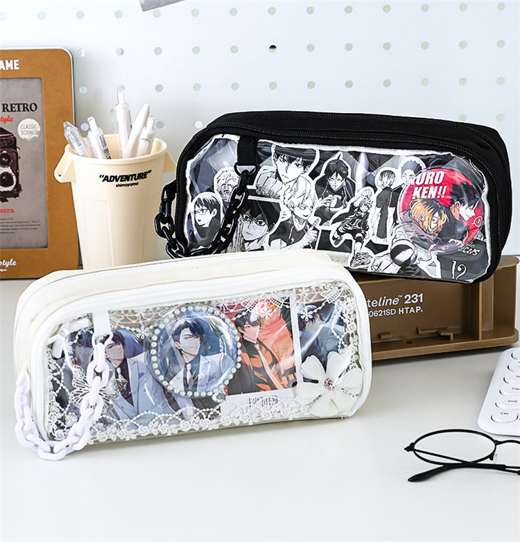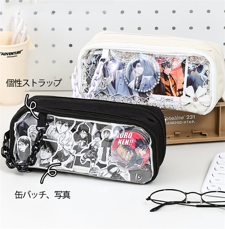 推し筆箱 痛 ペンケース 筆箱 推し 痛ペンケース 痛バ 痛バッグ 缶バッジ入れ クリア 透明窓 大容量 多機能 子供 小学生 中学生 高校生 大学生 学生 大人 スクール 女の子 男の子 おしゃれ
