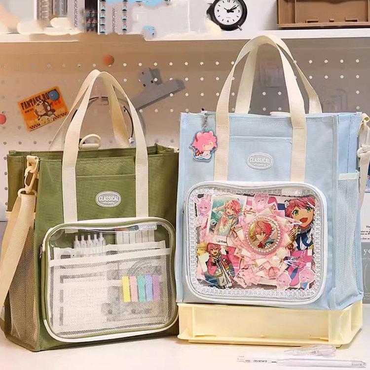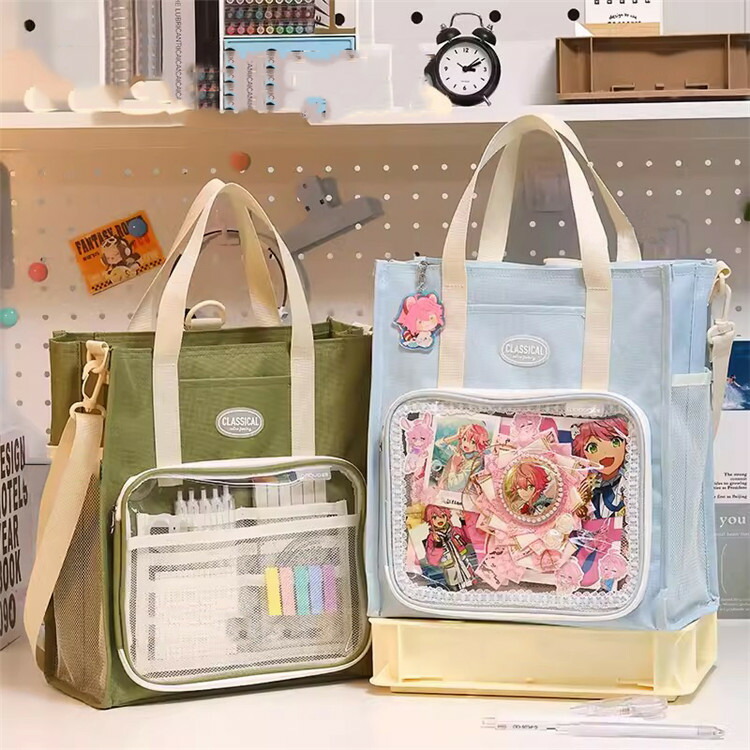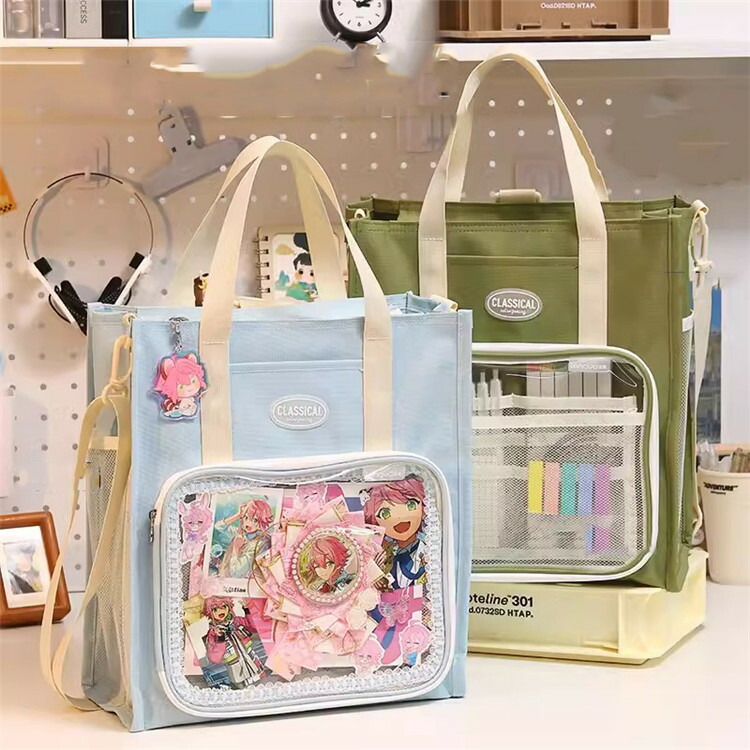 新色追加】レッスンバッグ 女の子 男の子 通学 通園 入園準備 入学準備 キッズ 小学生 中学生 高校生 手提げバッグ 透明窓 クリアバッグ 痛バッグ 痛バ リュック 3way シン ショルダーバッグ