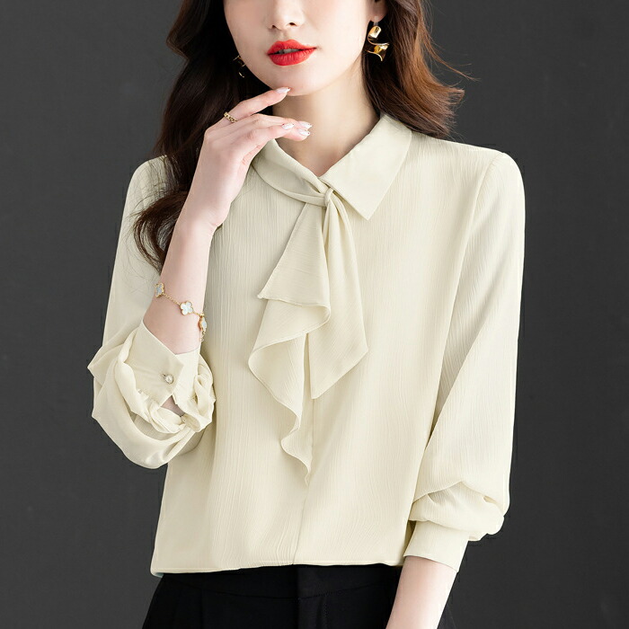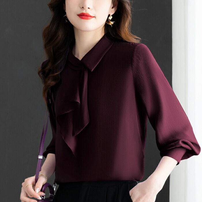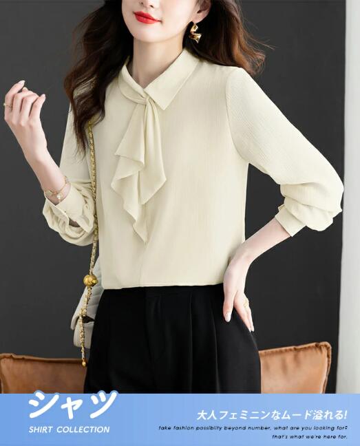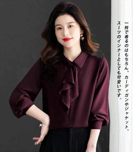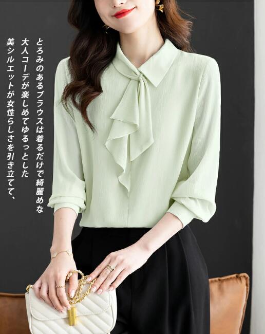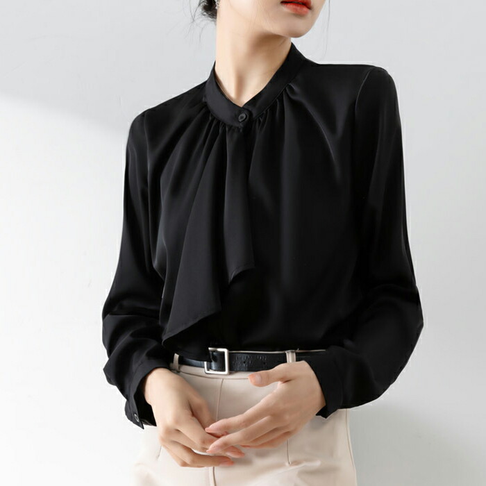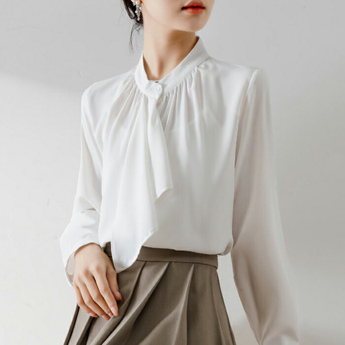 ブラウス ボウタイ レディース スーツ シャツ おしゃれ ユニフォーム 即納 フォーマル 立ち襟 長袖 スタンドカラー インナー トップス プリーツ シフォン きれいめ 卒業式 入学式 防シワ 開襟 就活 職場 仕事 通勤 母の日 ギフト S/M/L/LL/2XL素材