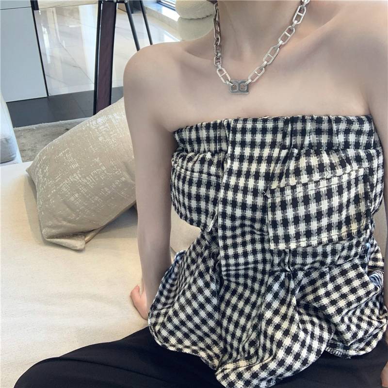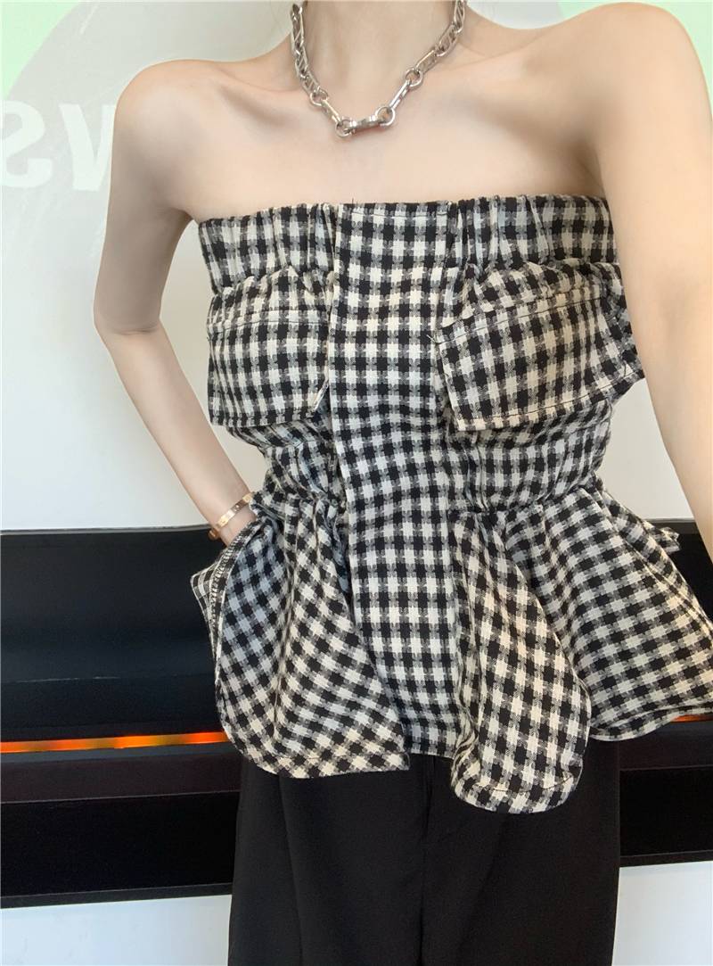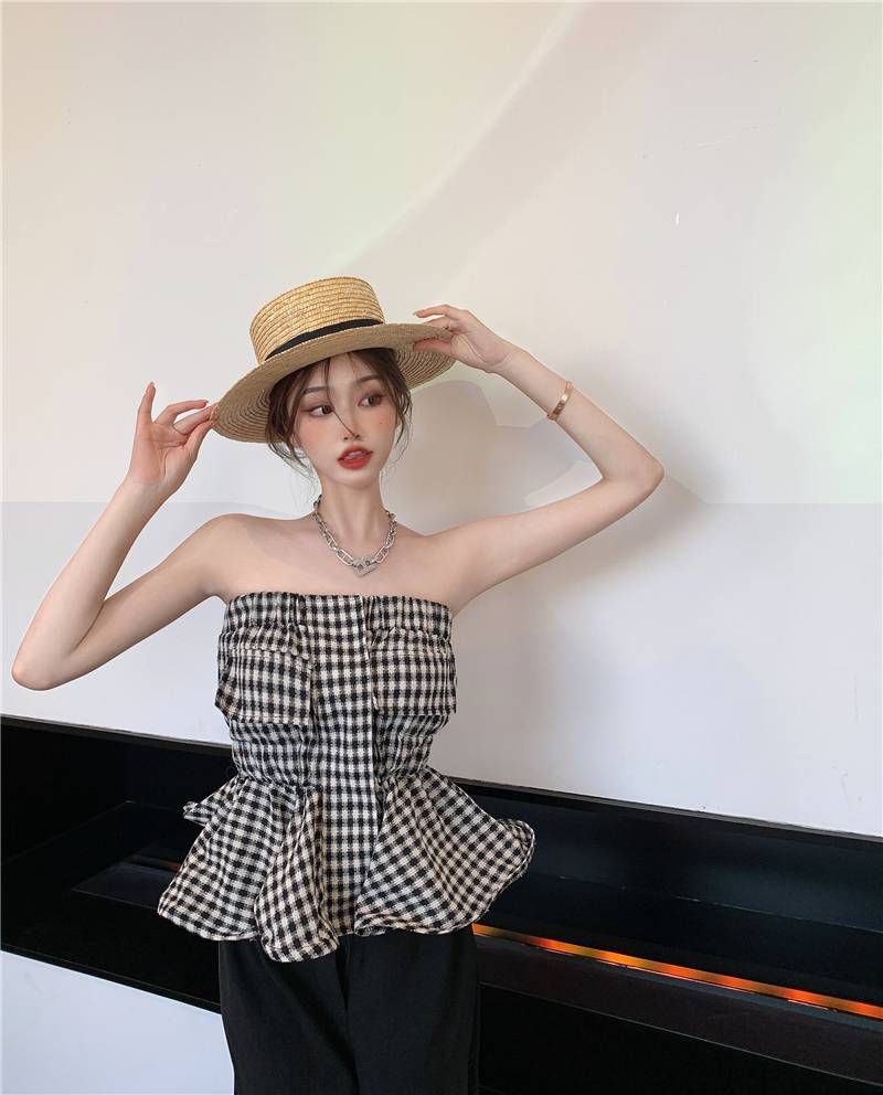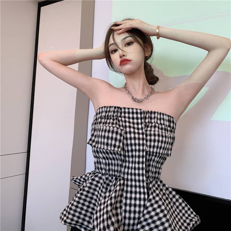 ガーリーなギンガムチェック風のチューブトップ☆ペプラムデザインで可愛くお腹カバーも^^【カラー】写真の色