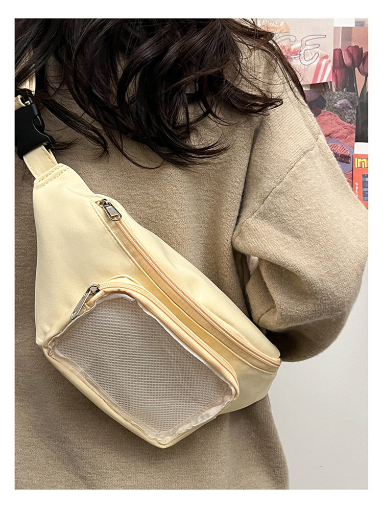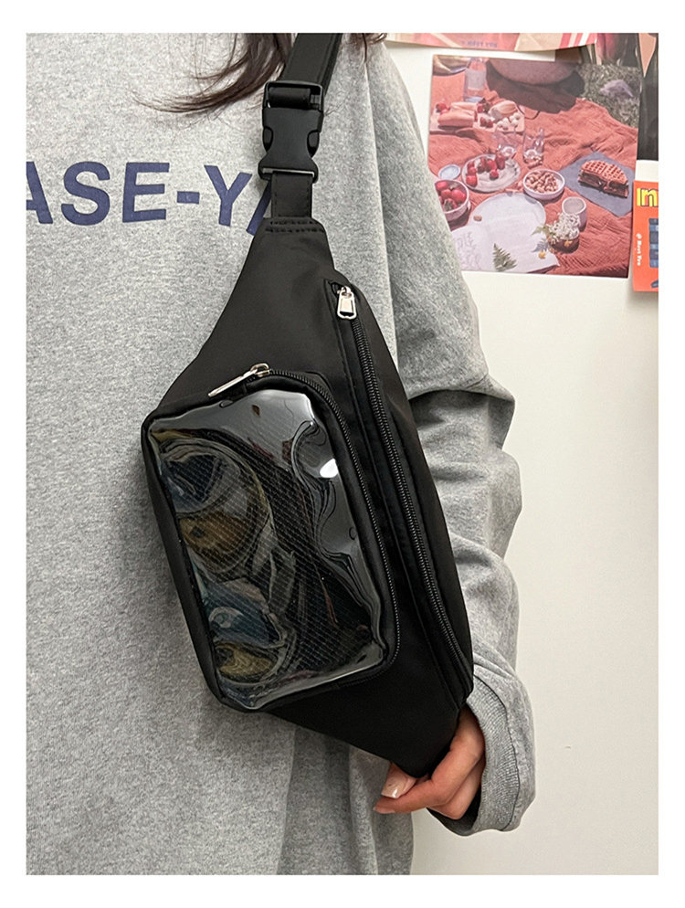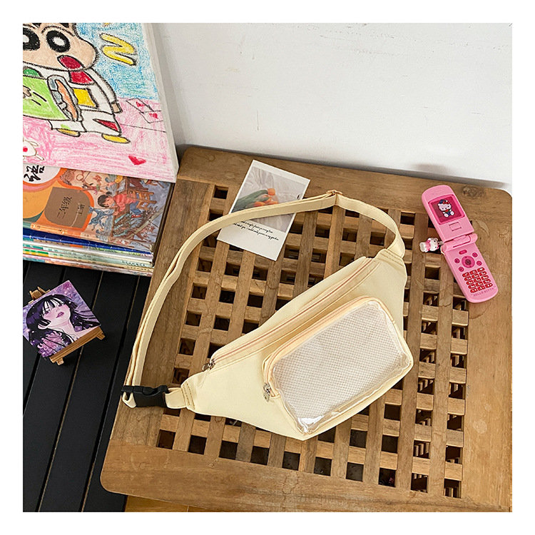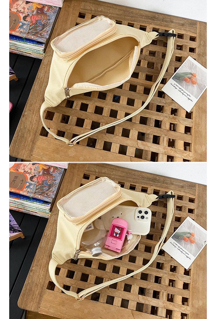 ウエストバッグは使う時手を解放し、旅行を楽にします。正面透明バッグ付きデザイン、
