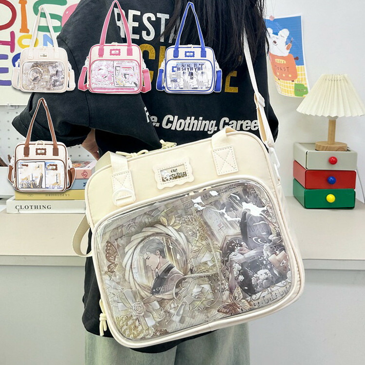 痛バ 痛バッグ ショルダー レディース バッグ かばん ショルダーバッグ 推し活 推しバッグ 缶バッチ オタク オタク活 推し 可愛 かわいい 透明窓 透明バッグ ビニール クリア カバ クリアバッグ