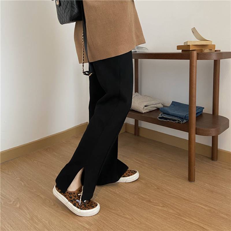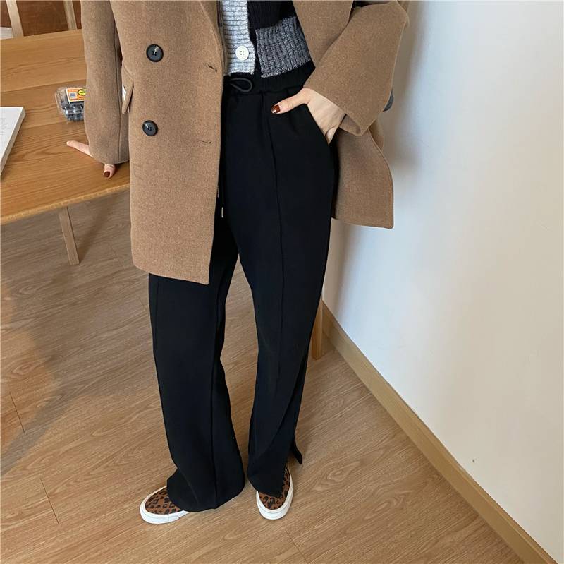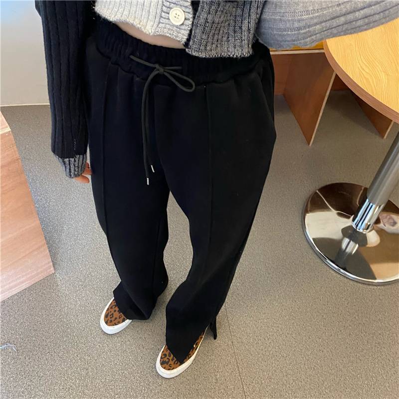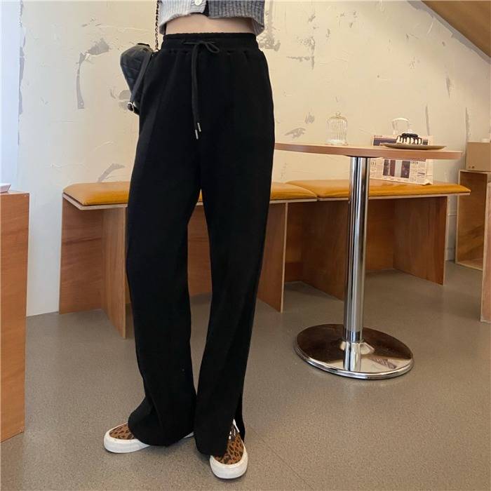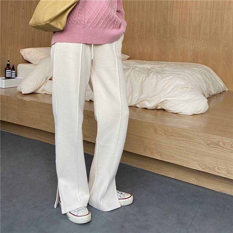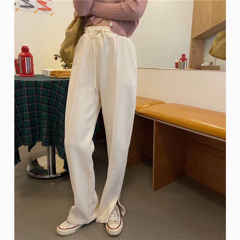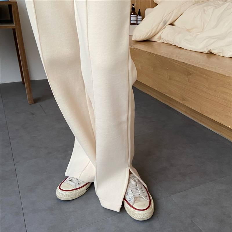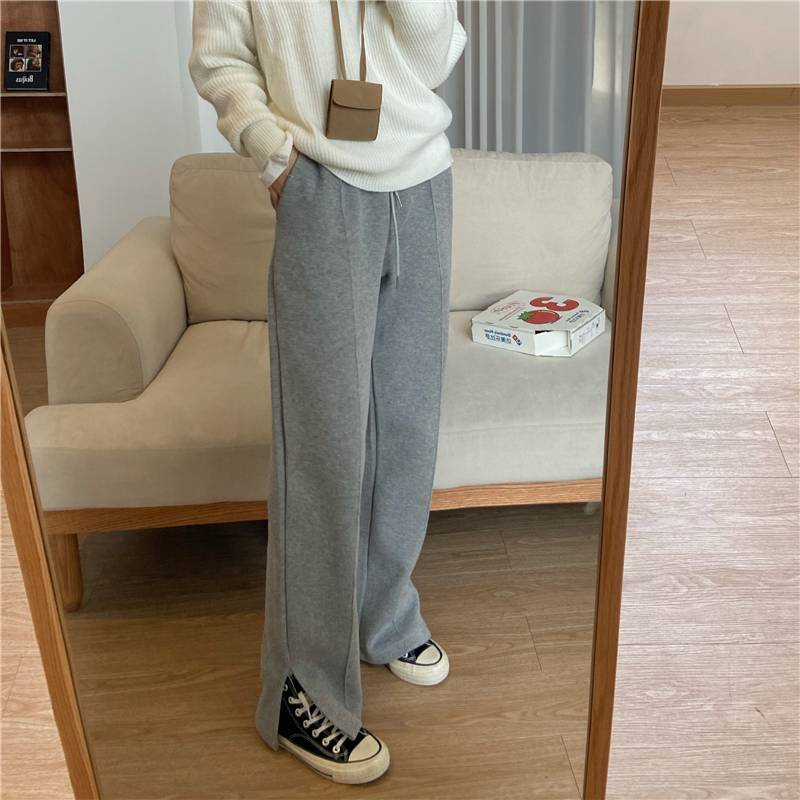 3色 パンツ レディース スウェット ストレート ワイド センタープレス ボトムス ズボン おしゃれ カジュアル 切れ込み スリット 黒 グレー 無地 リラックス ハイウエスト ブラ ジャージ