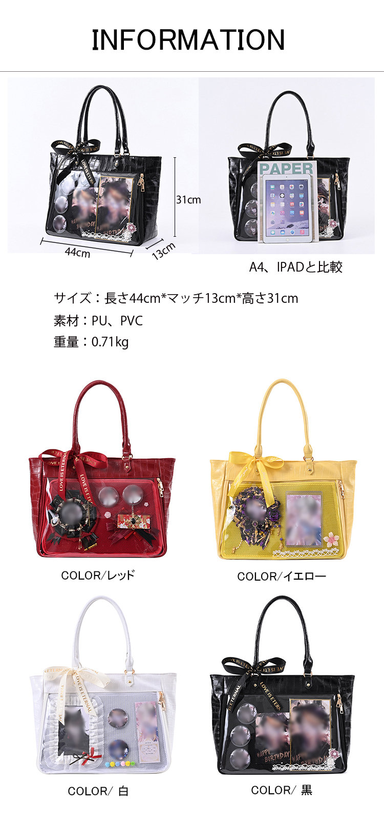 痛バッグ 痛バ a4 推し活 バッグ バッグ レディースバッグ トートバッグ 新登場! 黒 白 イエロー レッド
