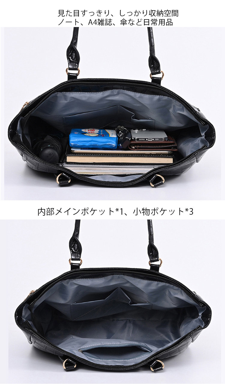 A4雑誌、ipad、教科書、手帳、ファイル、スマホ、傘、化粧品、財布などを入れます。