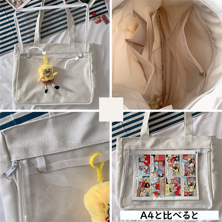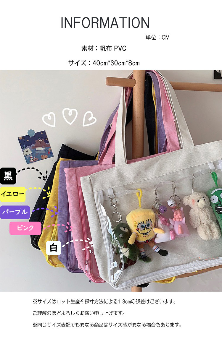 痛バッグ 痛バ a4 トートバッグ レディース バッグ カバン 鞄 ヲタバ 透明バッグ クリア クリアバッグ 推し 推しバッグ 推し活 缶バッチ ぬいぐるみ オタク 大容量 A4 学生 オタクバッグ
