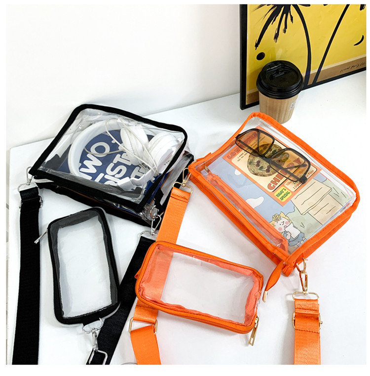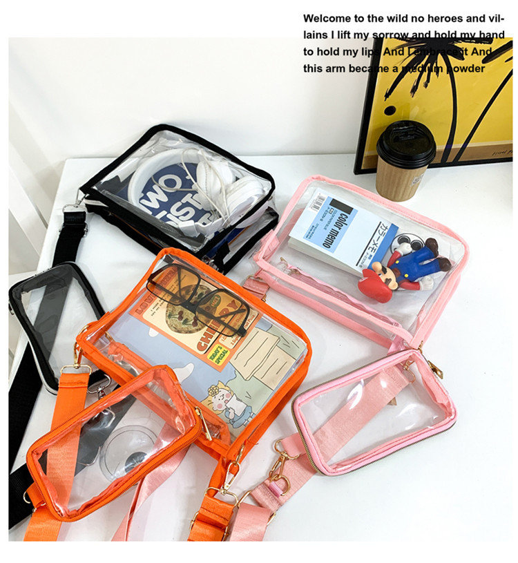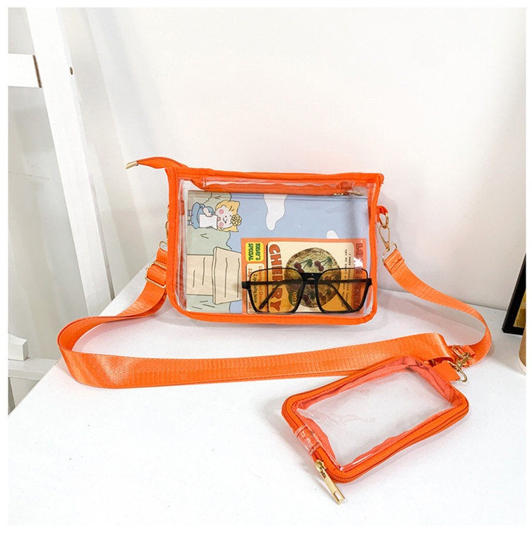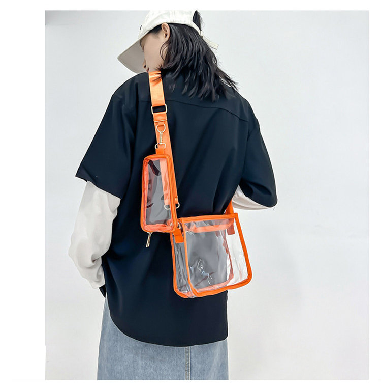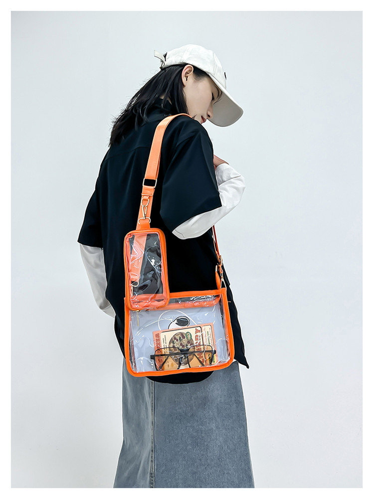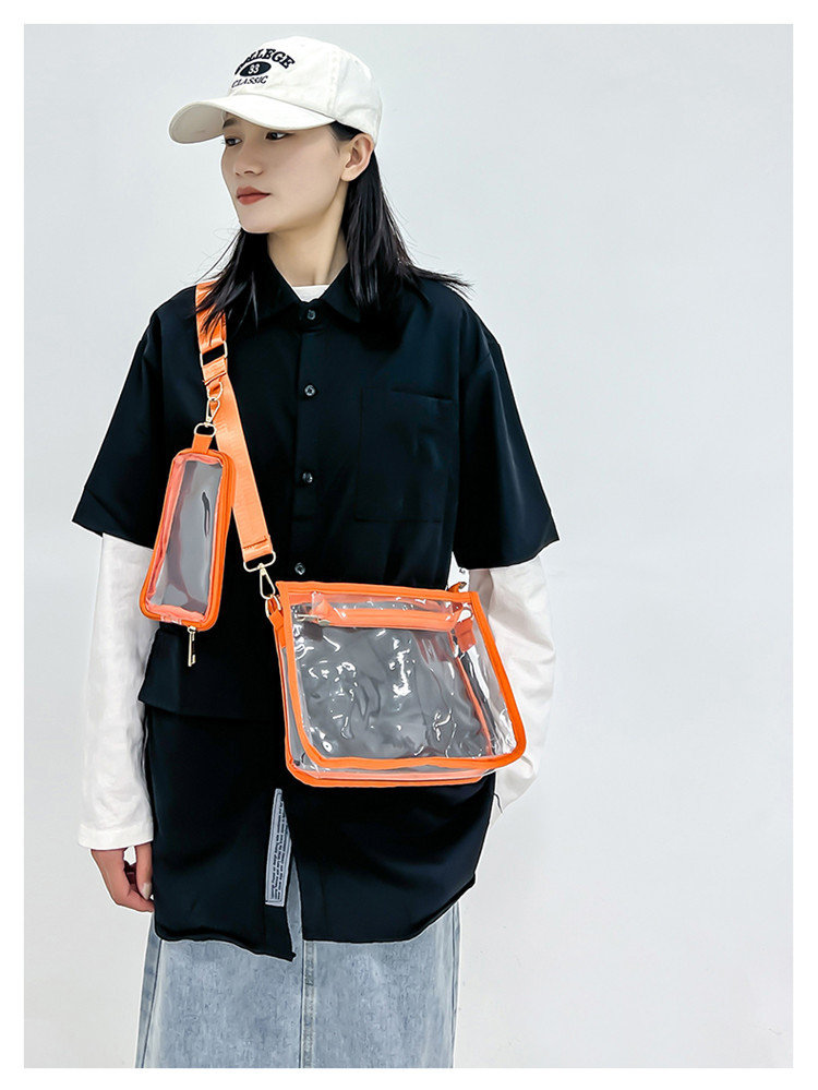 クリアバッグ ショルダー ミニ 小さめ バッグ 男女兼用バッグ ショルダーバッグ メッセンジャーバッグ 通販 ブラック ピンク オレンジ 黒1個+ピンク1個 黒1個+オレンジ1個 ピンク1個+オレンジ1個