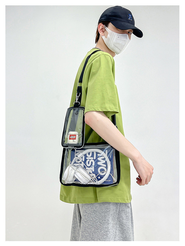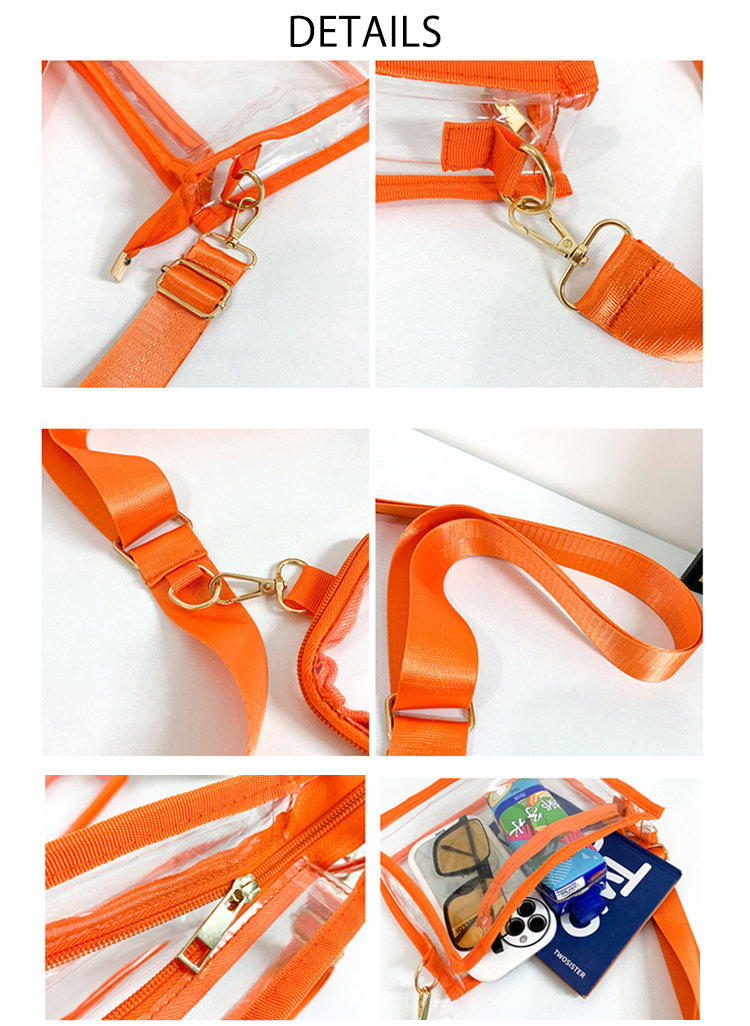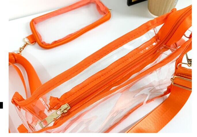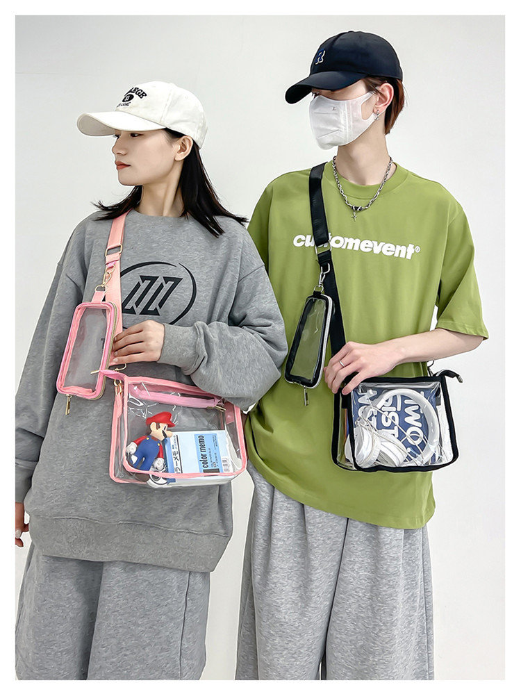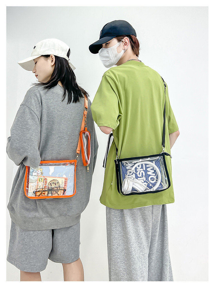 クリアバッグ ショルダー ミニ 小さめ バッグ 男女兼用バッグ ショルダーバッグ メッセンジャーバッグ 通販 ブラック ピンク オレンジ 黒1個+ピンク1個 黒1個+オレンジ1個 ピンク1個+オレンジ1個