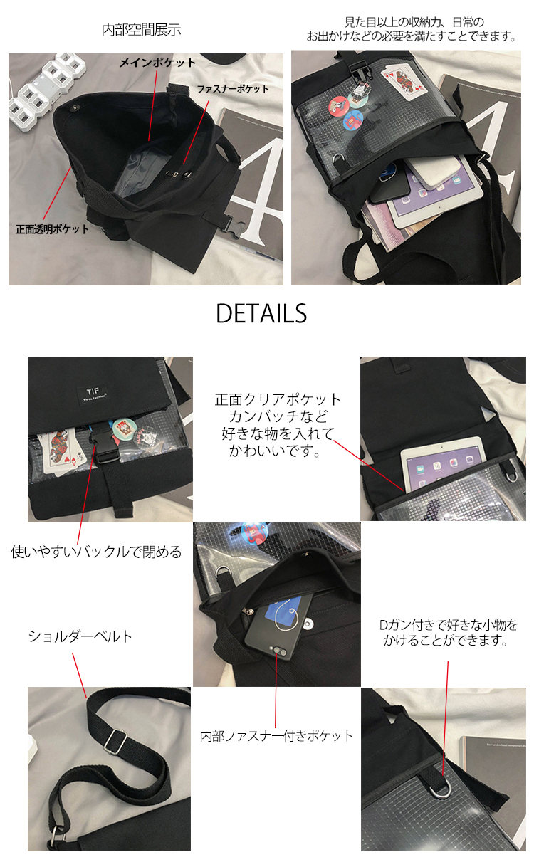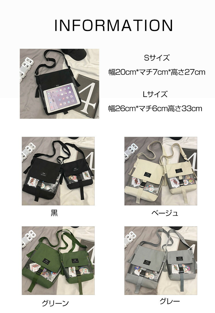 大容量 痛バッグ クリア バッグ 痛バ バッグ 小物 ブランド雑貨 人気 黒_S 黒_L