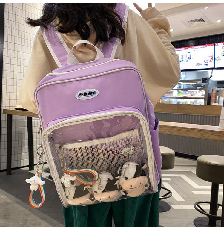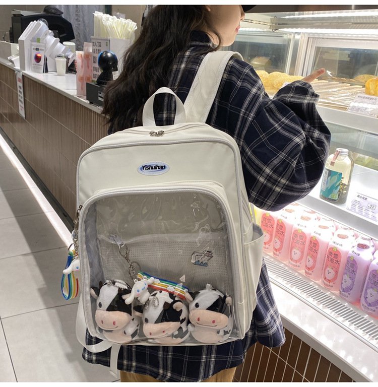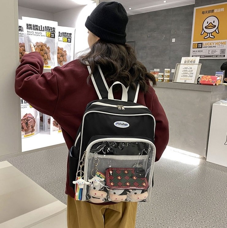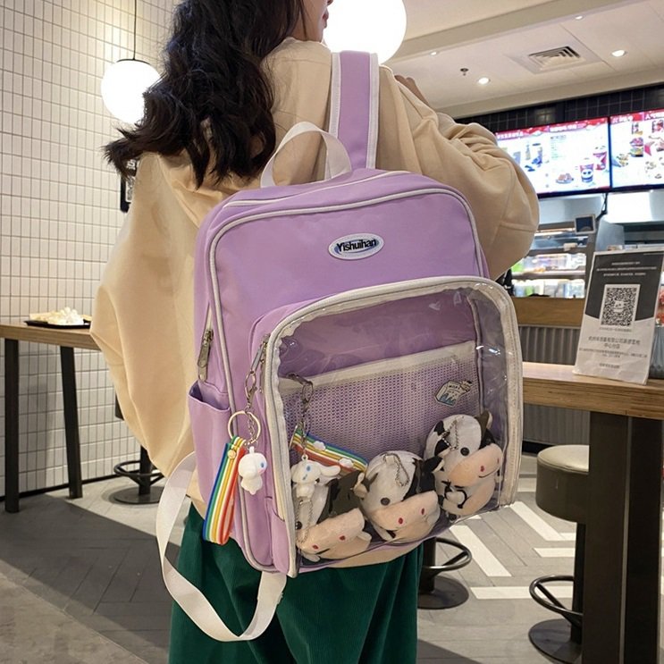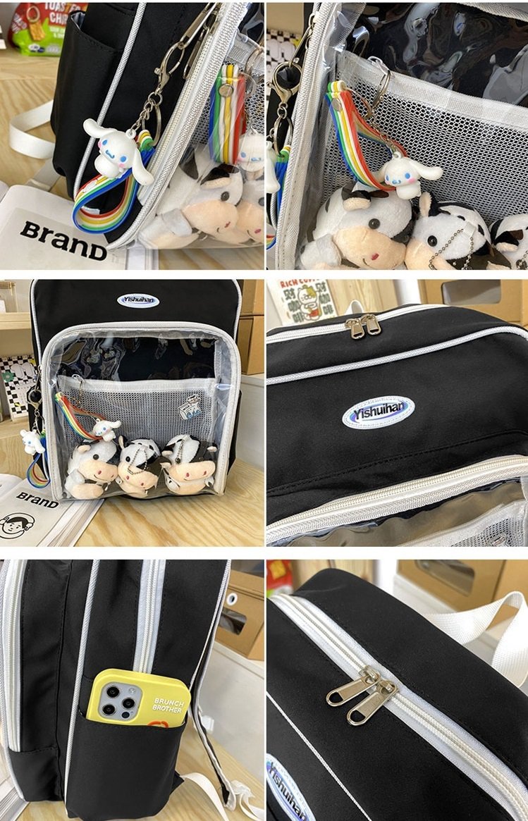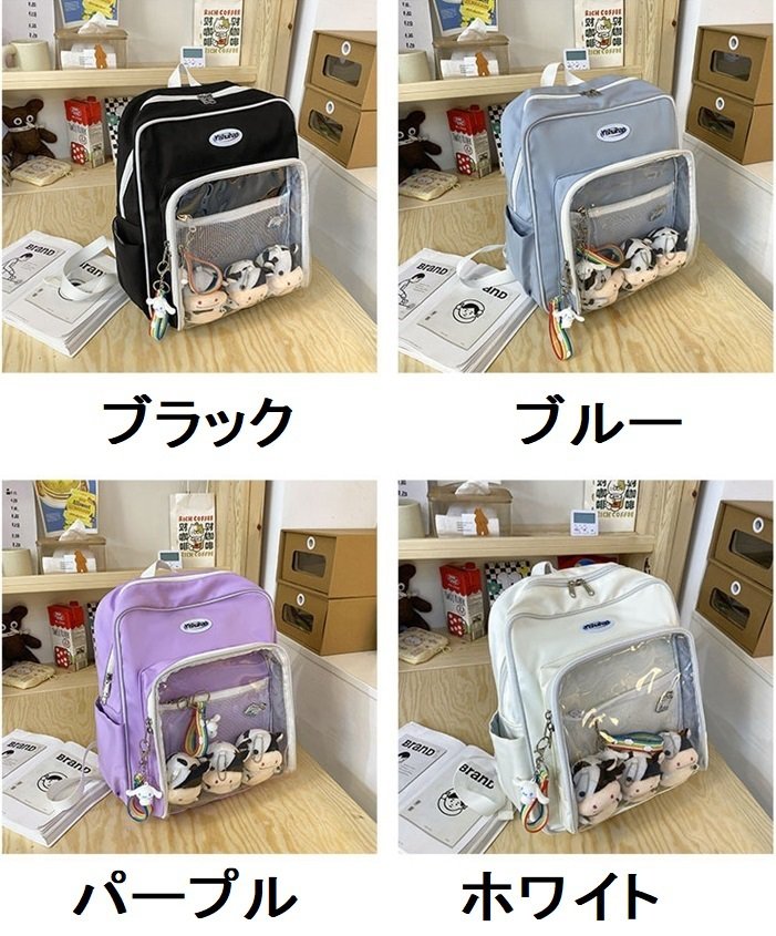 レディース 4色 痛バッグ 大容量 リュック ぬいぐるみ 痛バ リュックサック スクエア 痛リュック 推し活 デコ ぬいぐるみバッグ オタク 透明バッグ クリアバッグ デコバッグ 缶 クリア
