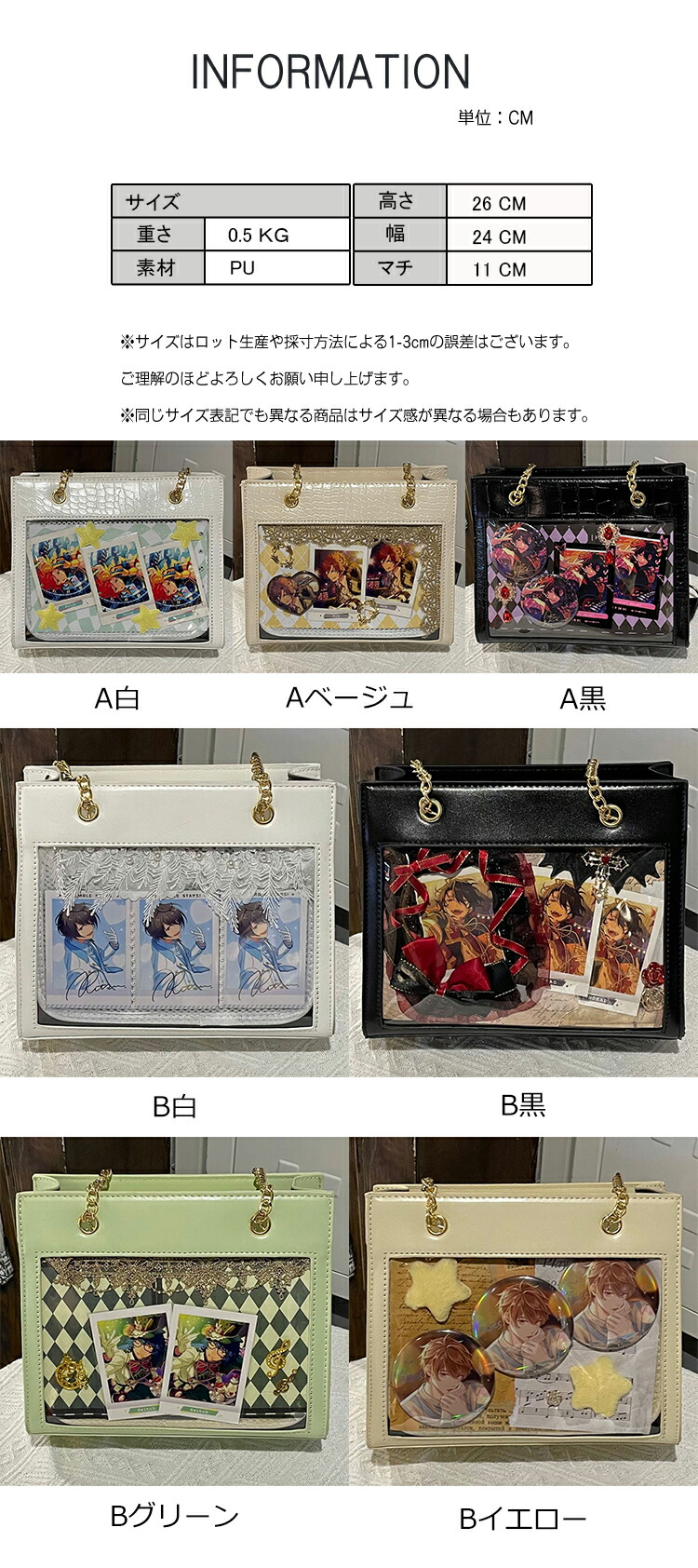 痛バ 痛バッグ バッグ トートバッグ バッグ レディースバッグ トートバッグ 続々登場 A黒 Aベージュ B白 B黒 Bグリーン Bイエロー