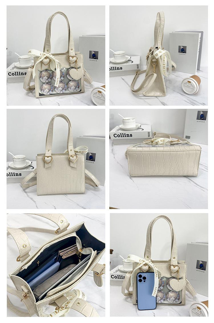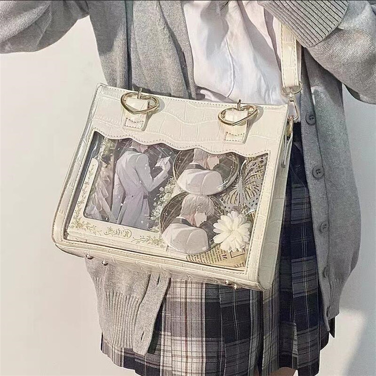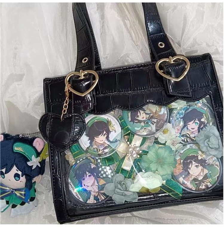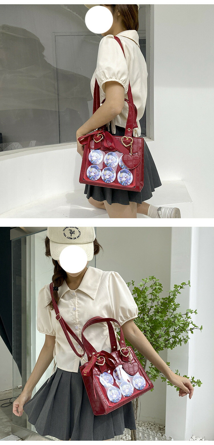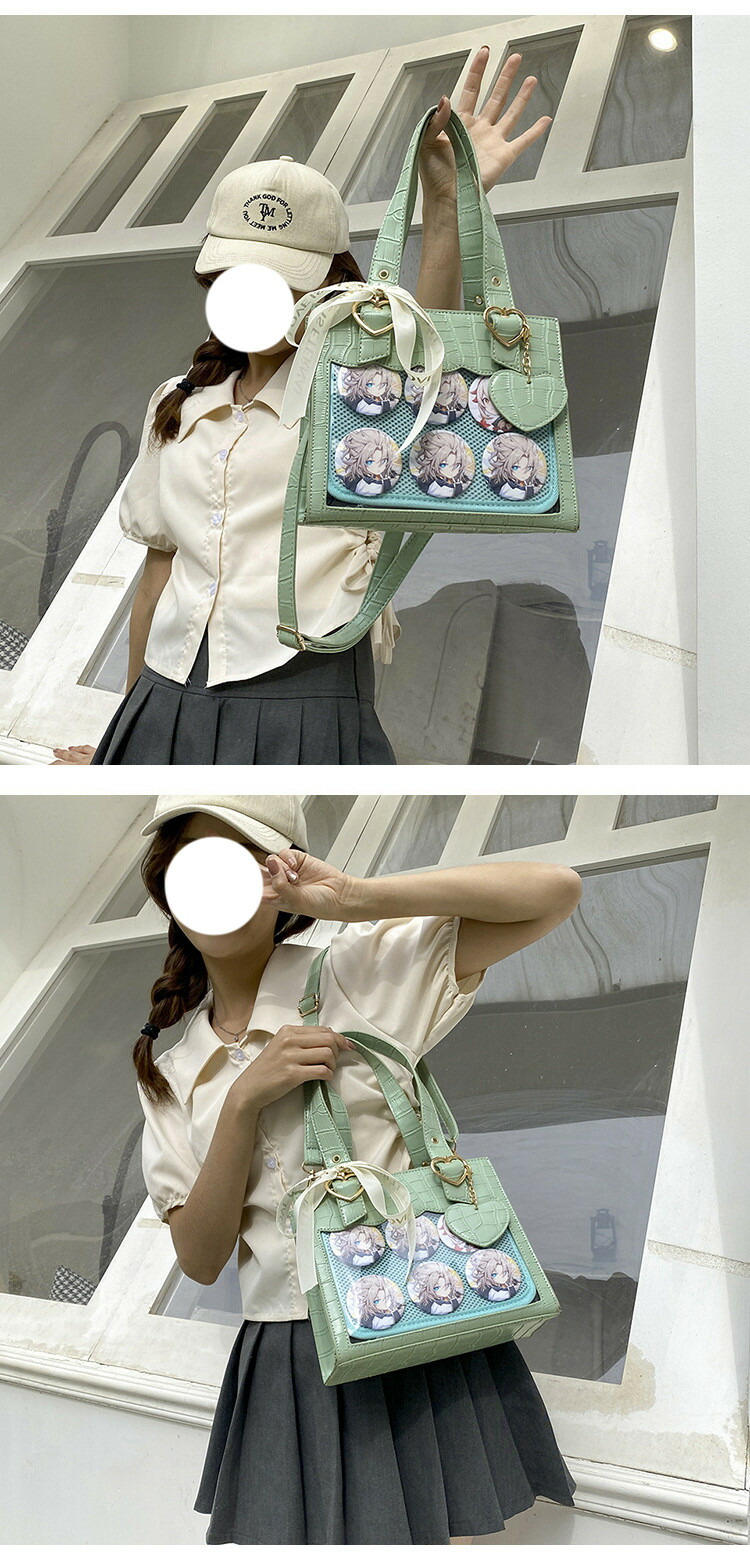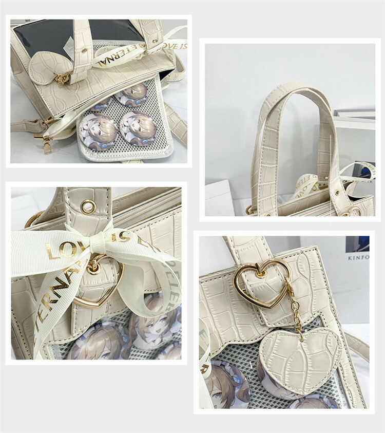 ◆ フロントに透明ポケットで見せたいアイテムを自由にアレンジできます。好きな芸能人やアニメキャラの写真、缶バッジ、ストラップ、ぬいぐるみ、萌グッズなど入れて一目瞭然です。