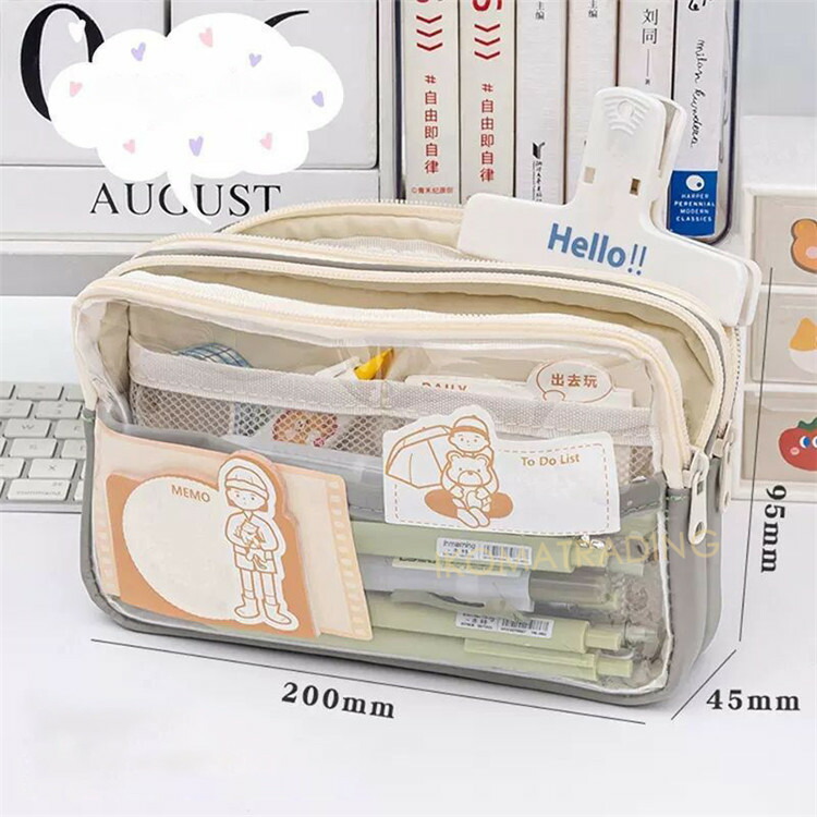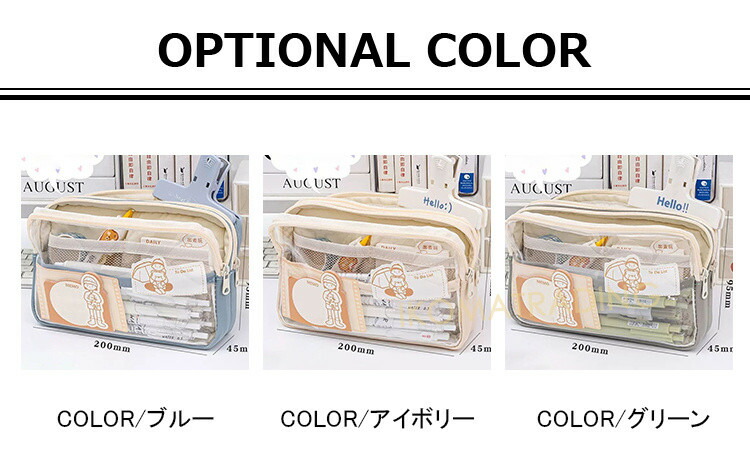 クリア ペンケース 痛バッグ 透明 筆 文房具 事務用品 筆記具 ペンケース 特集 ブルー アイボリー グリーン