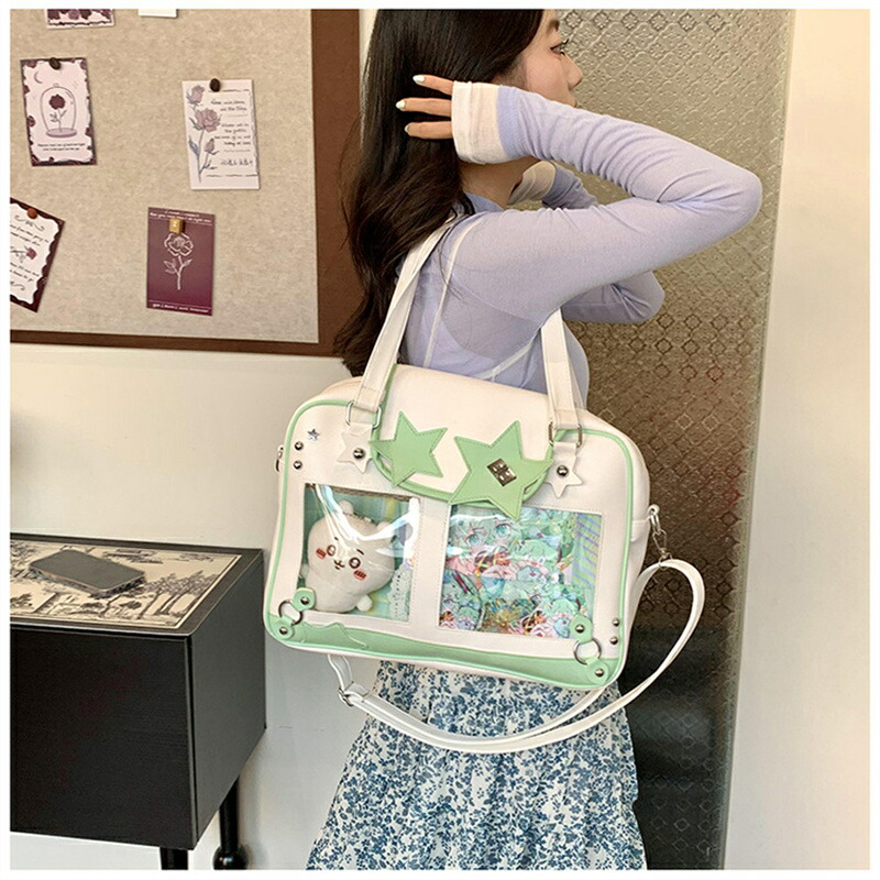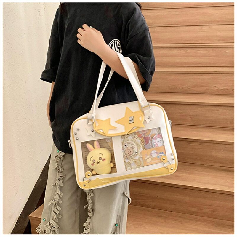 透明 トート 痛バッグ 痛バ ショルダー 肩掛け ショルダーバッグ トートバッグ 可愛い かわいい 推し 推しカラー 推し色 推し活 オタ活 ヲタ活 缶バッチ ぬいぐるみ A4 B5 見せる 大きめ 安い バッグ かばん カバン おしゃれ レディース