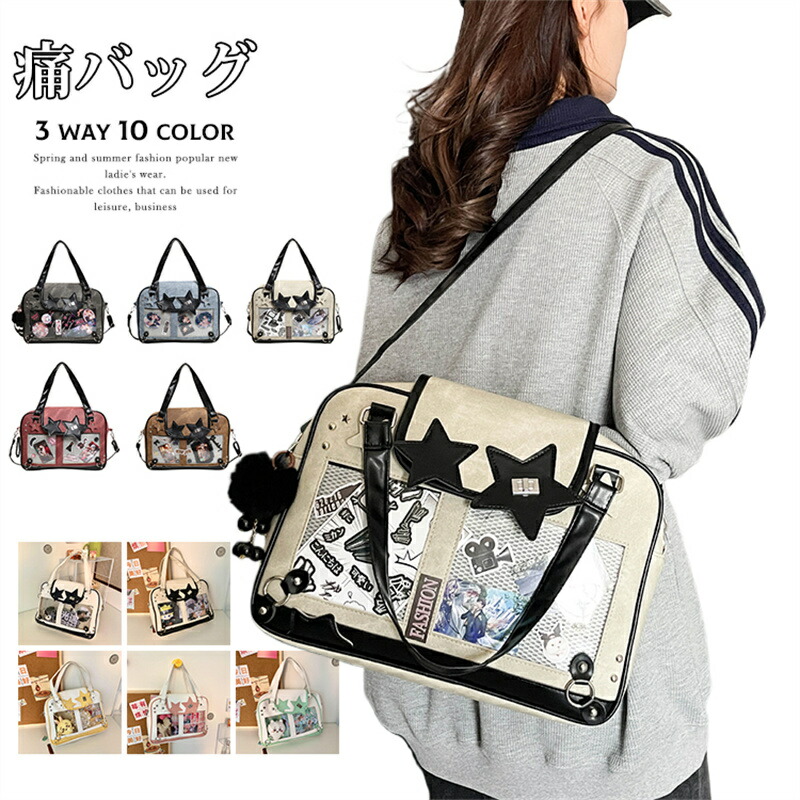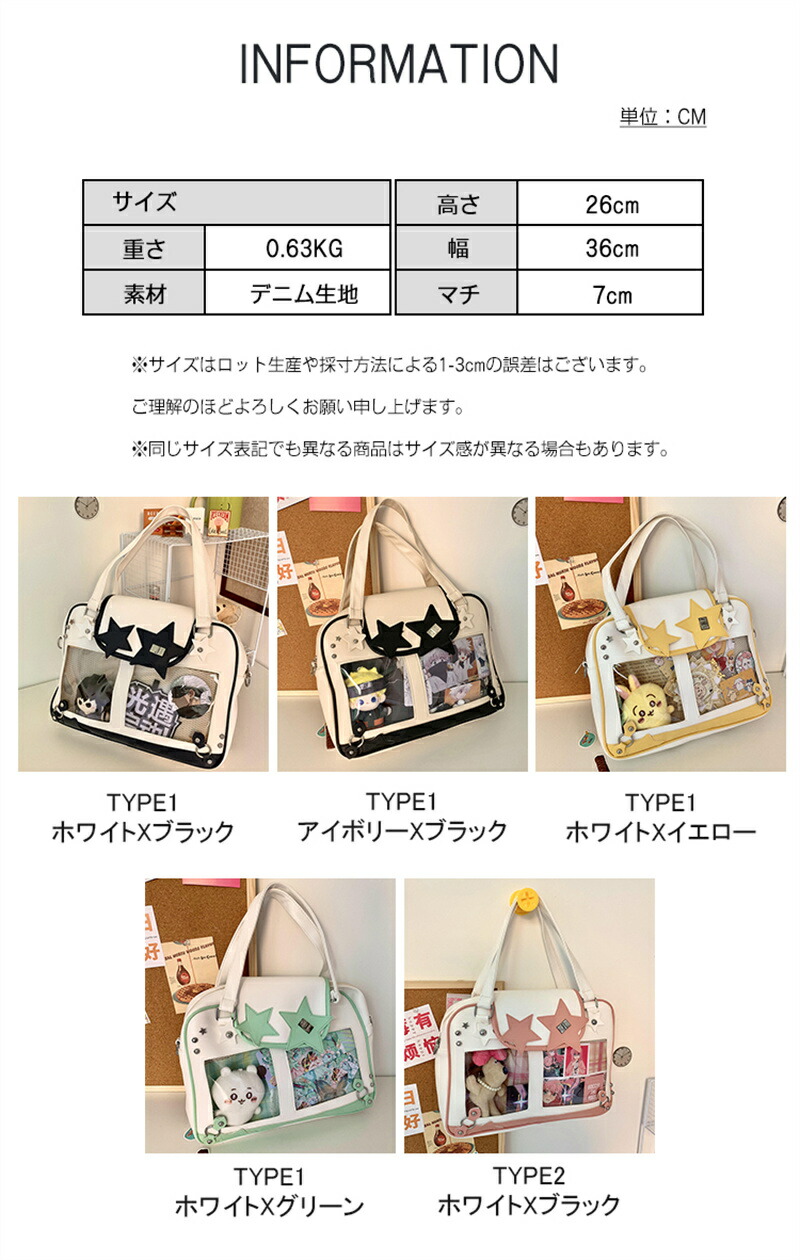 透明 トート 痛バッグ 痛バ ショルダ バッグ メンズバッグ 2way 3wayバッグ 続々登場 type1アイボリーxブラック type1ホワイトxイエロー type1ホワイトxグリーン type1ホワイトxピンク type1ホワイトxブラック type2ブラウンxブラック type2ブラックxブラック type2ブルーxブラック type2ホワイトxブラック type2レッドxブラック