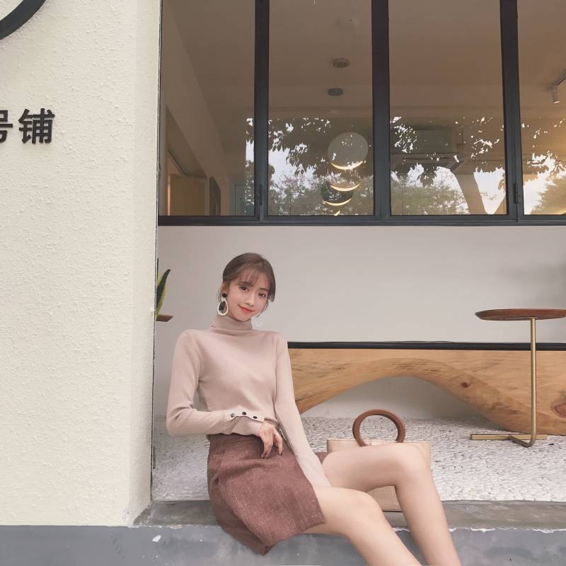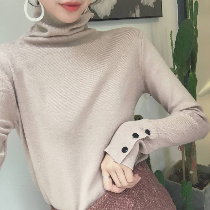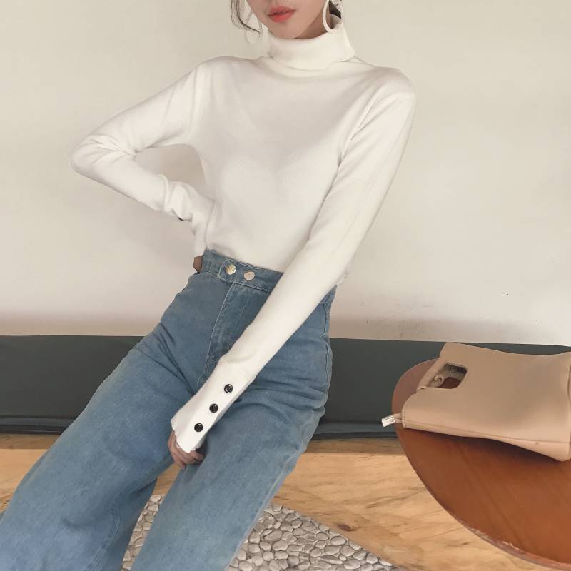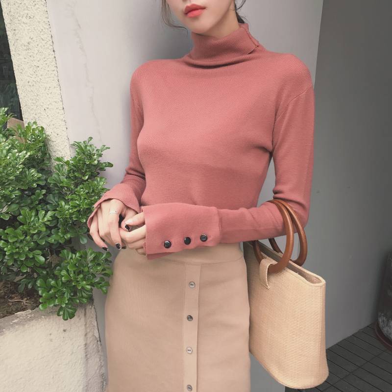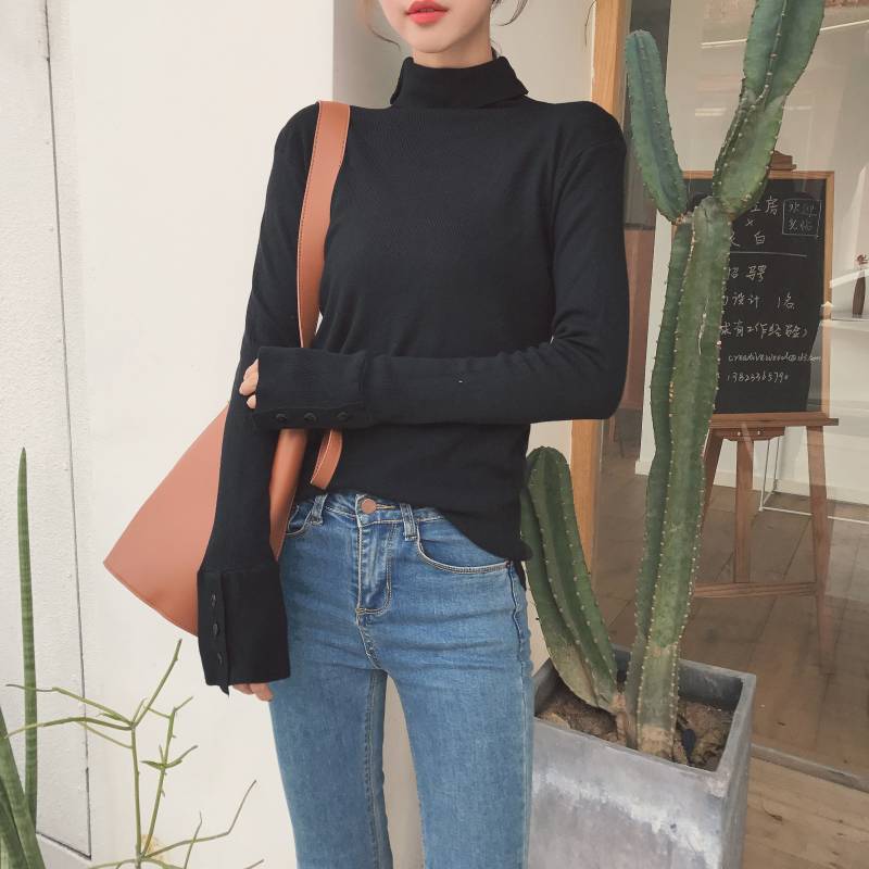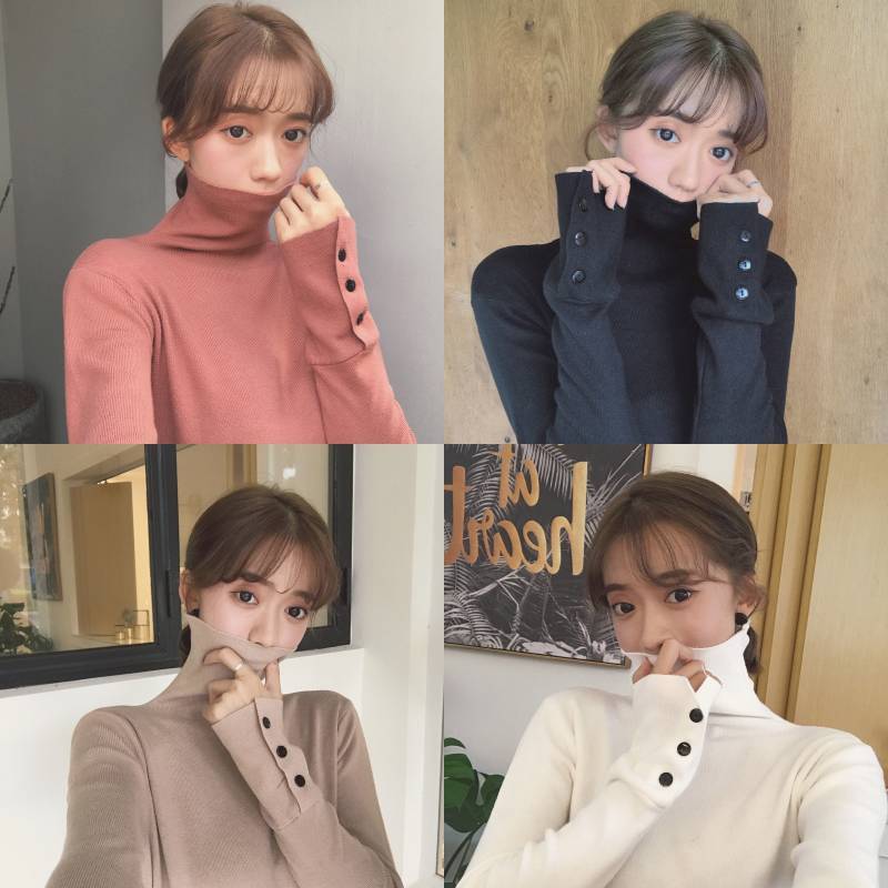 ニット トップス レディース セーター 長袖 タートルネック シンプル 細身 春 秋 冬 10代 20代 30代 40代 スリム スウェット ボタン タイト お洒落 ハイネック