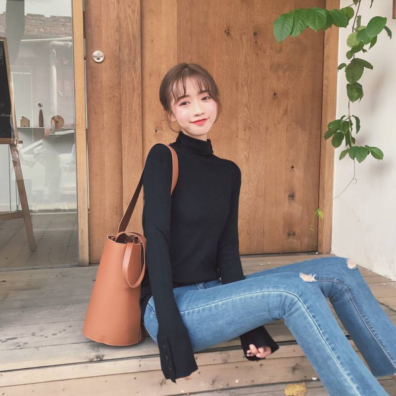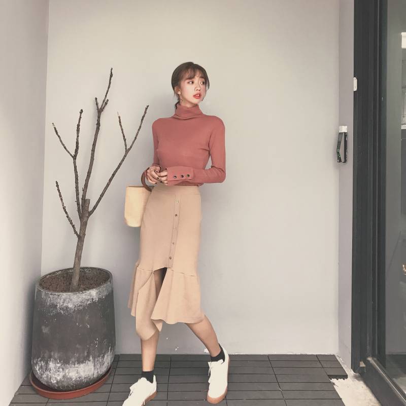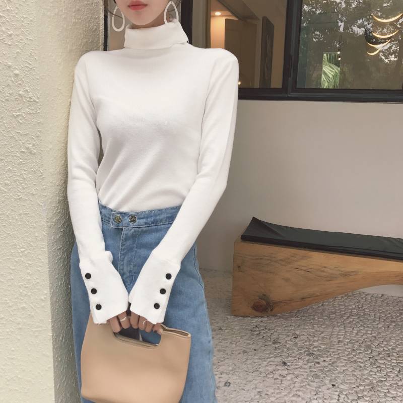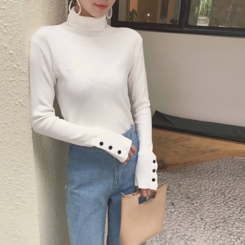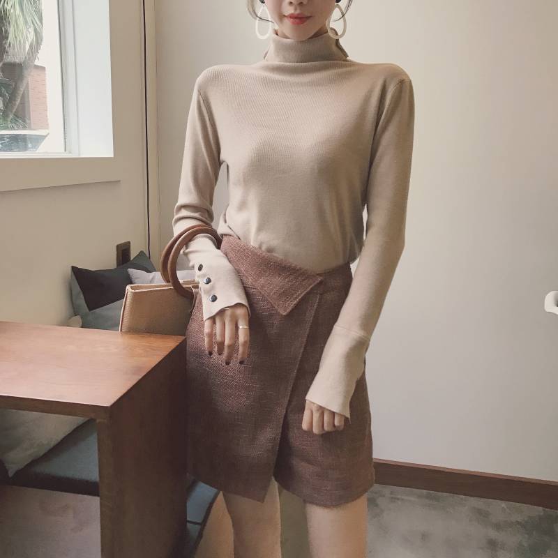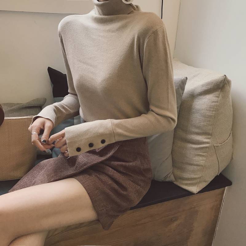 ニット トップス レディース セーター 長袖 タートルネック シンプル 細身 春 秋 冬 10代 20代 30代 40代 スリム スウェット ボタン タイト お洒落 ハイネック
