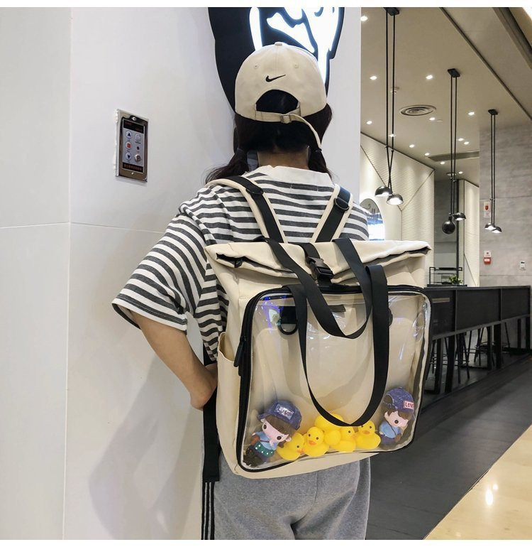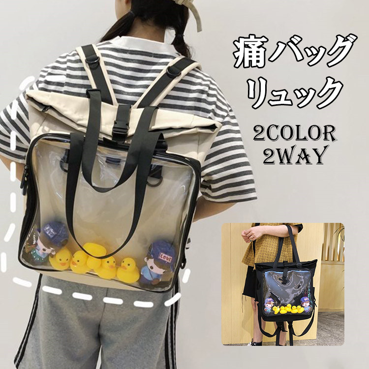 痛バッグ リュック 2way 鞄 レディース ガールズ A4 痛バ 大容量 缶バッチ 通学 学生 ビニールバッグ ヲタバ クリアバッグ 見せバッグ オタクバッグ カジュアル 透明バッグ