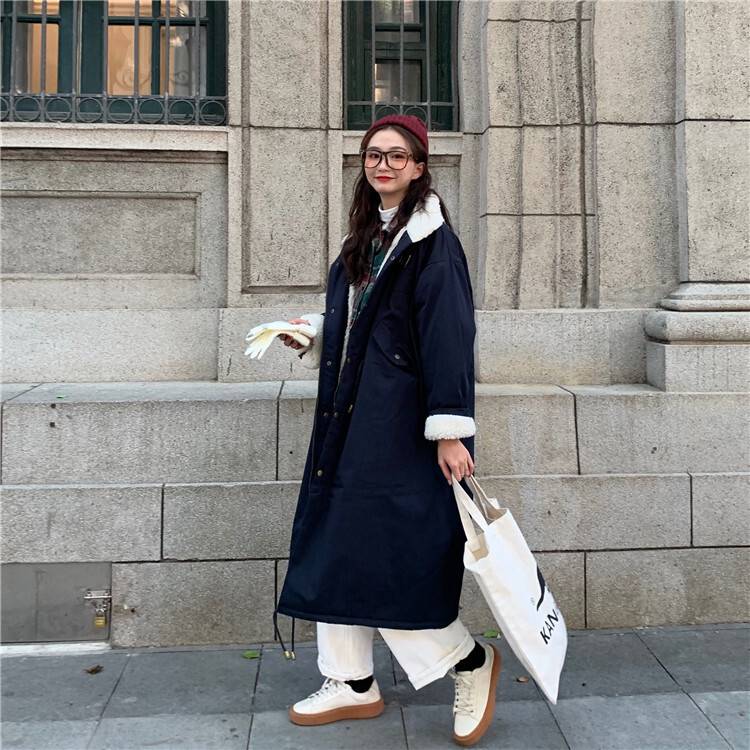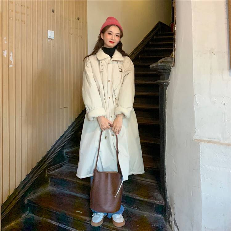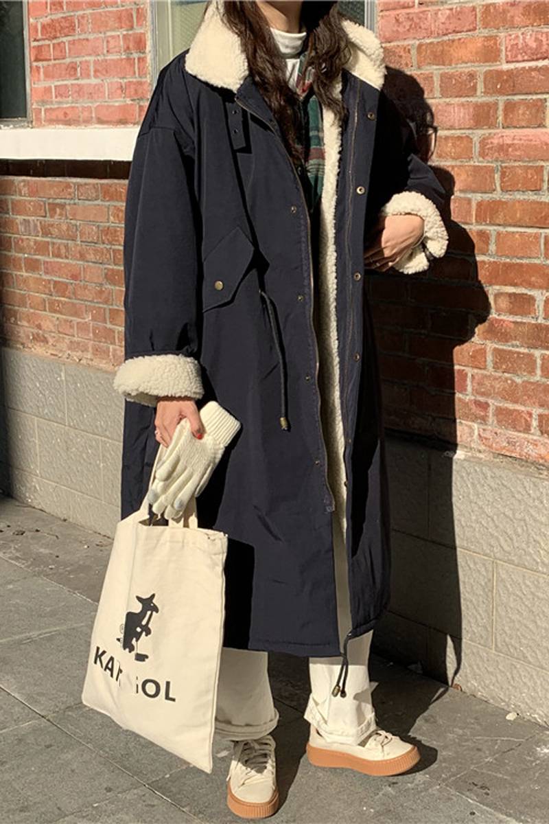 暖かいボア付のおしゃれなロングコート。