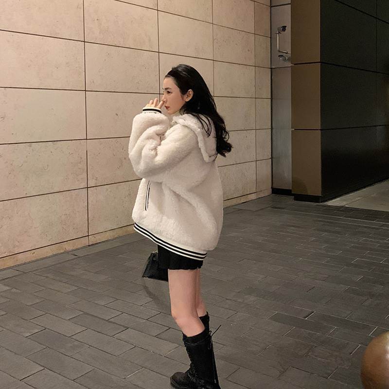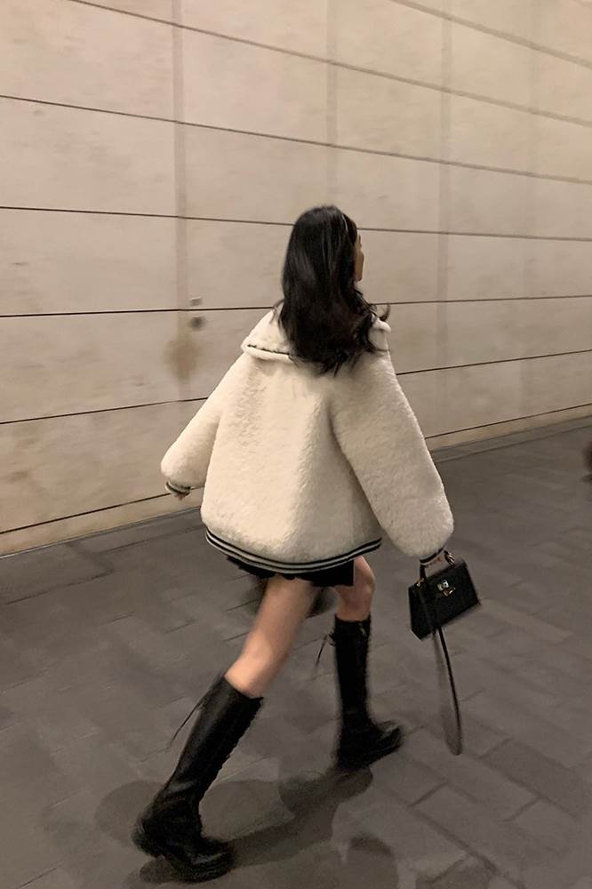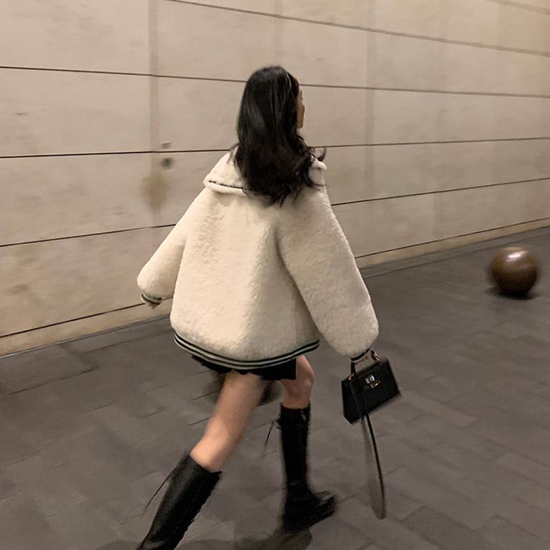 もこもこ アウター レディース 白 コート ジャケット 制服風 可愛い ビッグカラー ジャンパー ホワイト ブルゾン ボア 個性的 トレンド 人気 水兵 上品 高見え 冬 シンプル モコモコ フ 冬服