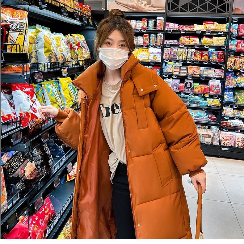8色 ロングダウン もこもこアウター コート ジャケット 豊富 カーキ ブラック ホワイト ライトブルー ブルー オレンジ ブラウン デニムブルー M L XL 2XL 3XL