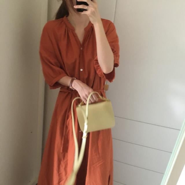 ロングワンピース シャツワンピース ワ ワンピース 新登場! オレンジ グリーン S M