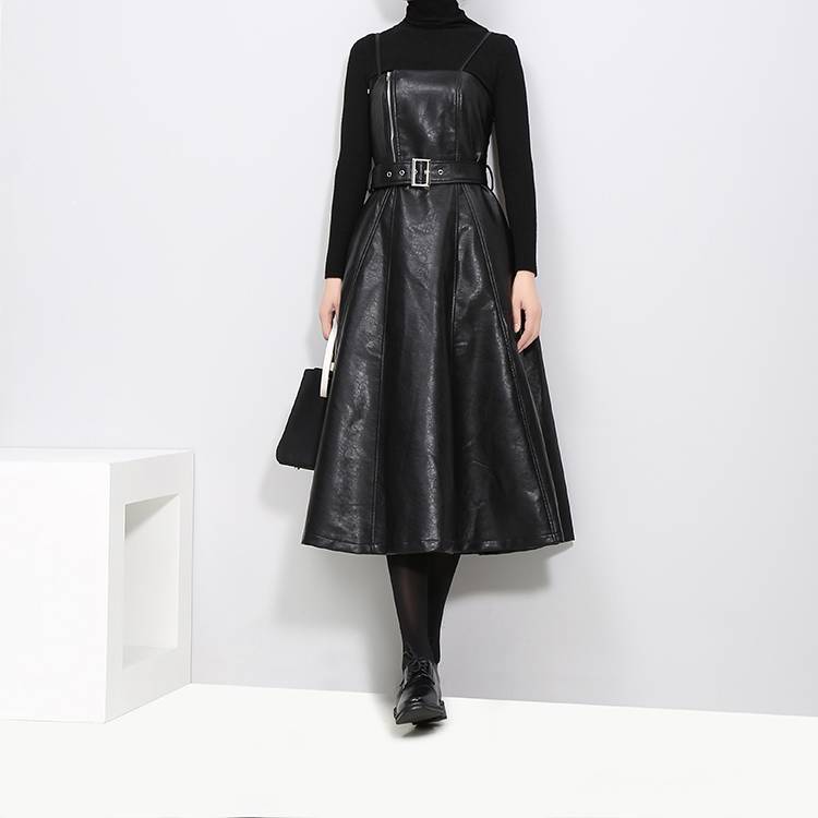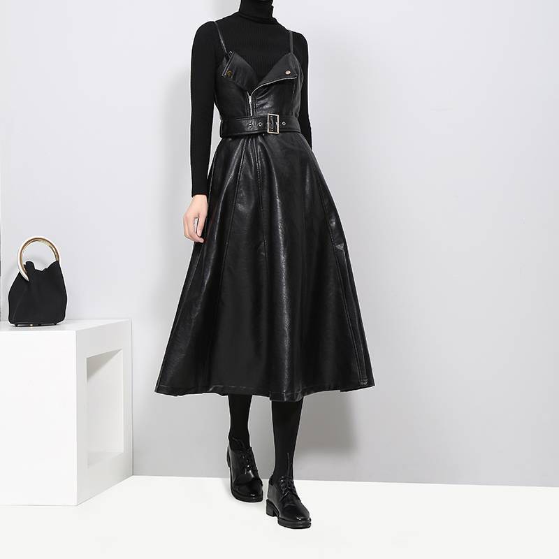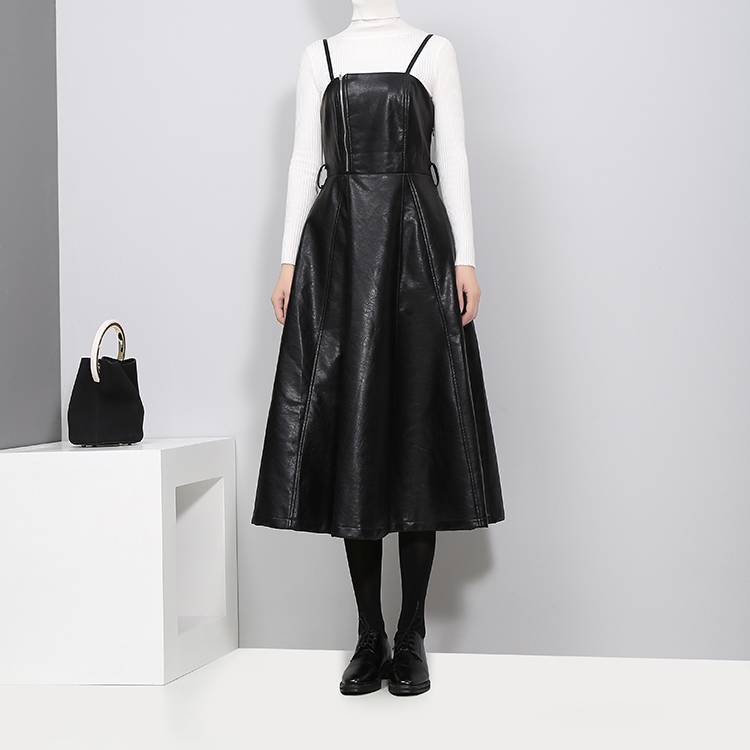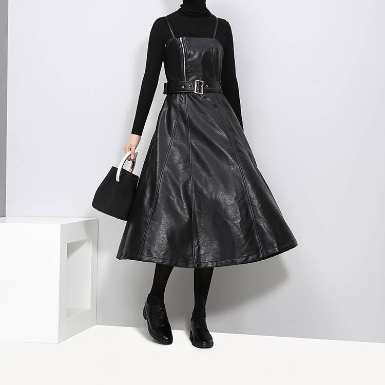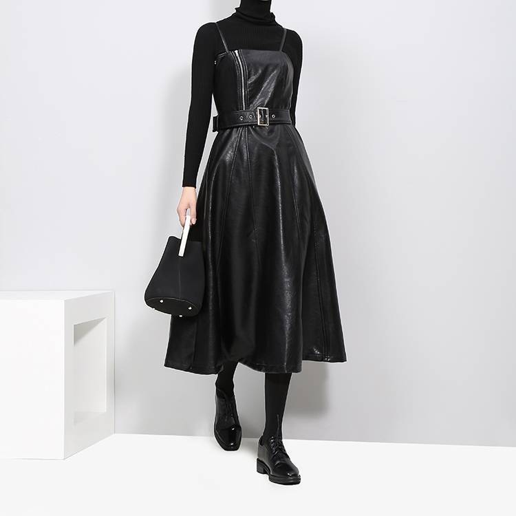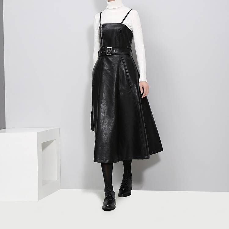 ミモレ丈ワンピース 綺麗めワンピース ワンピース ドレス レディース 秋 冬 きれいめ 10代 20代 レザー 黒 ロング ミモレ 膝丈 コーデ フレア キャミソール ウエストマーク ベルト Aライン
