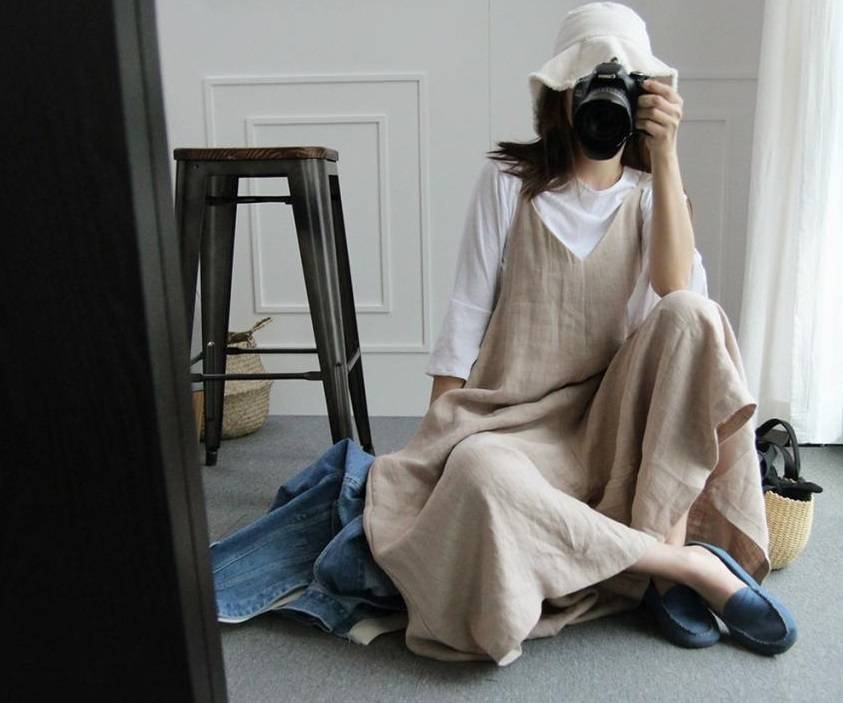 サロペット オールインワン レディース パンツ ジャンプスーツ リネン コットン ロング ワイドパンツ 涼し気 ママ ゆったり リラックス 休日 大きいサイズ 夏