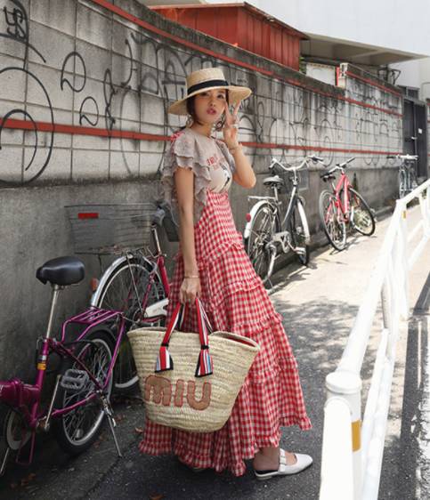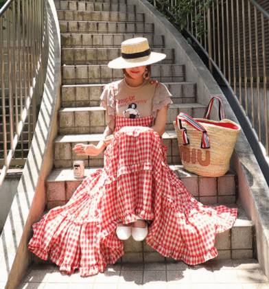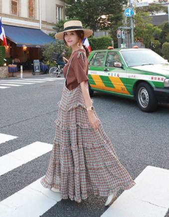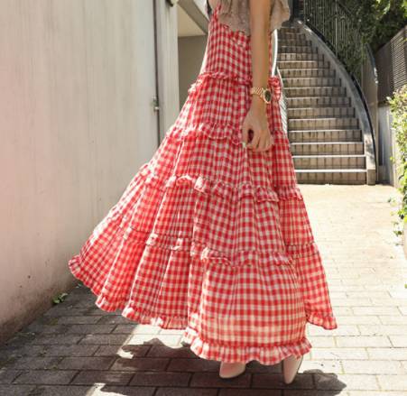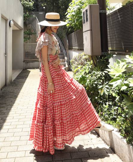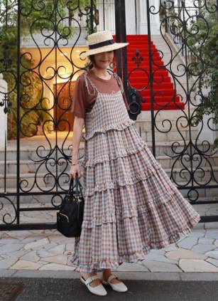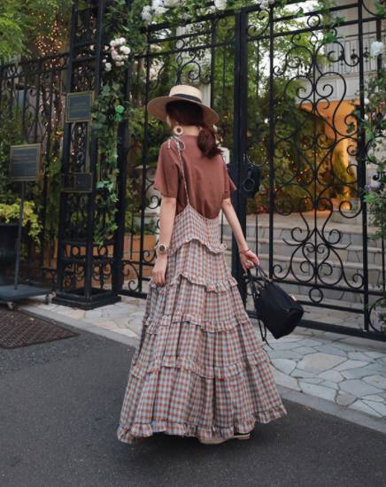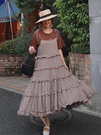 肩ひもを調節してミモレ丈〜マキシ丈まで可能