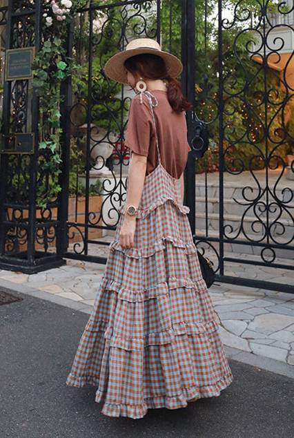 2色 ワンピース レディース ロングワンピ ティアード フレアスカート マキシワンピ マキシ丈 キャミワンピ おしゃれ 大人可愛い 個性的 ハイウエスト レトロ フェミニン 大きいサイズ き ガーリー