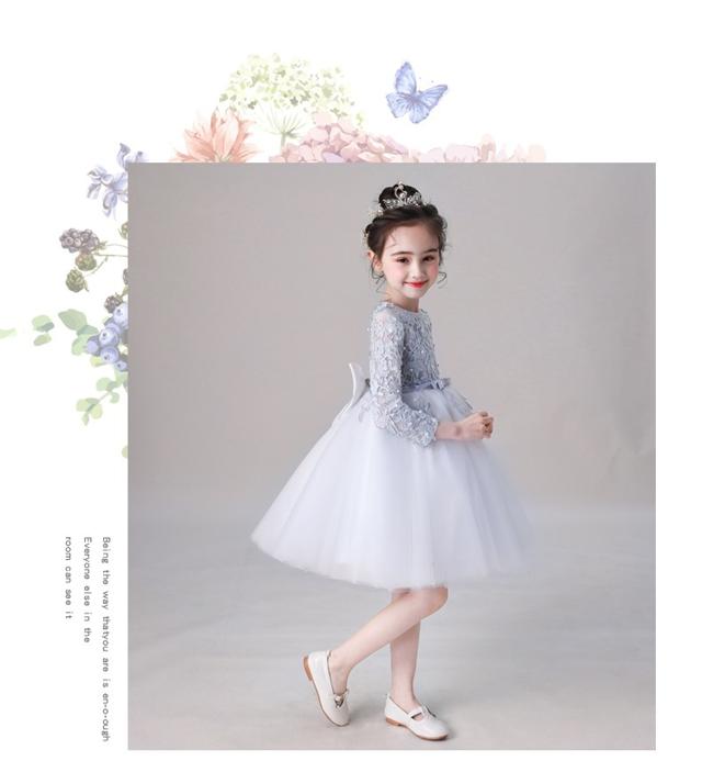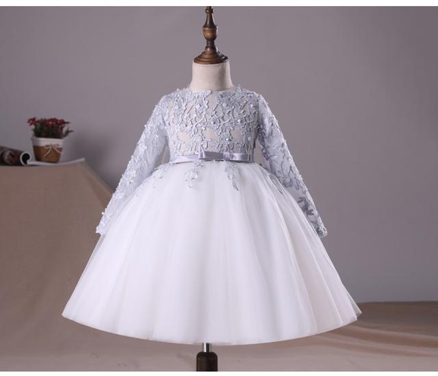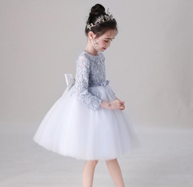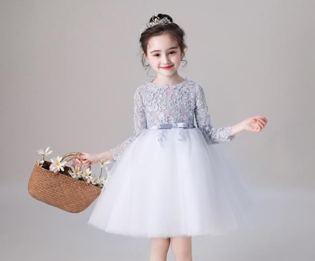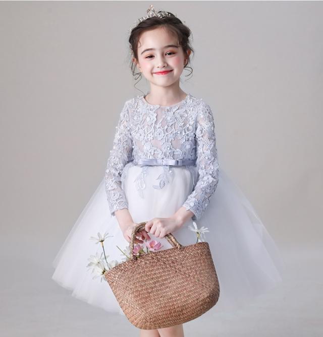 子供 ドレス 膝丈 ミニ 長袖 フレア キッズ ドレス 続々入荷中 シルバーグレー ピンク 110 120 130 140 150