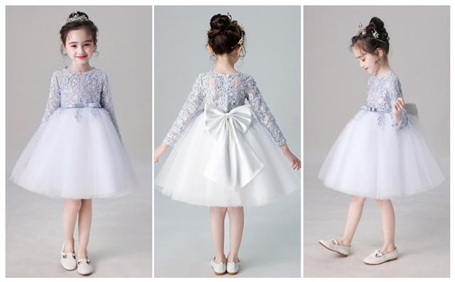 子供 ドレス プリンセス 膝丈 長袖 大人っぽ