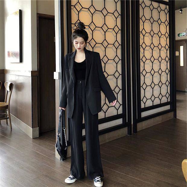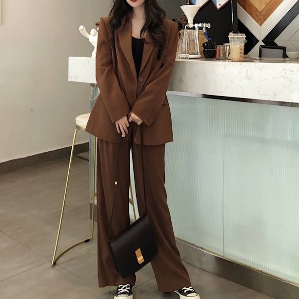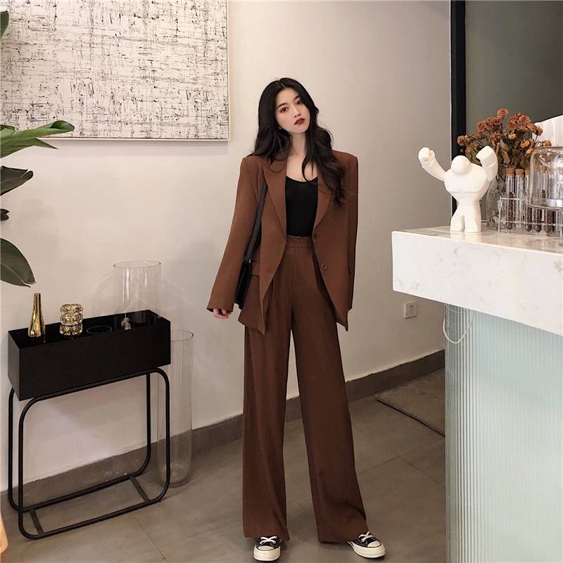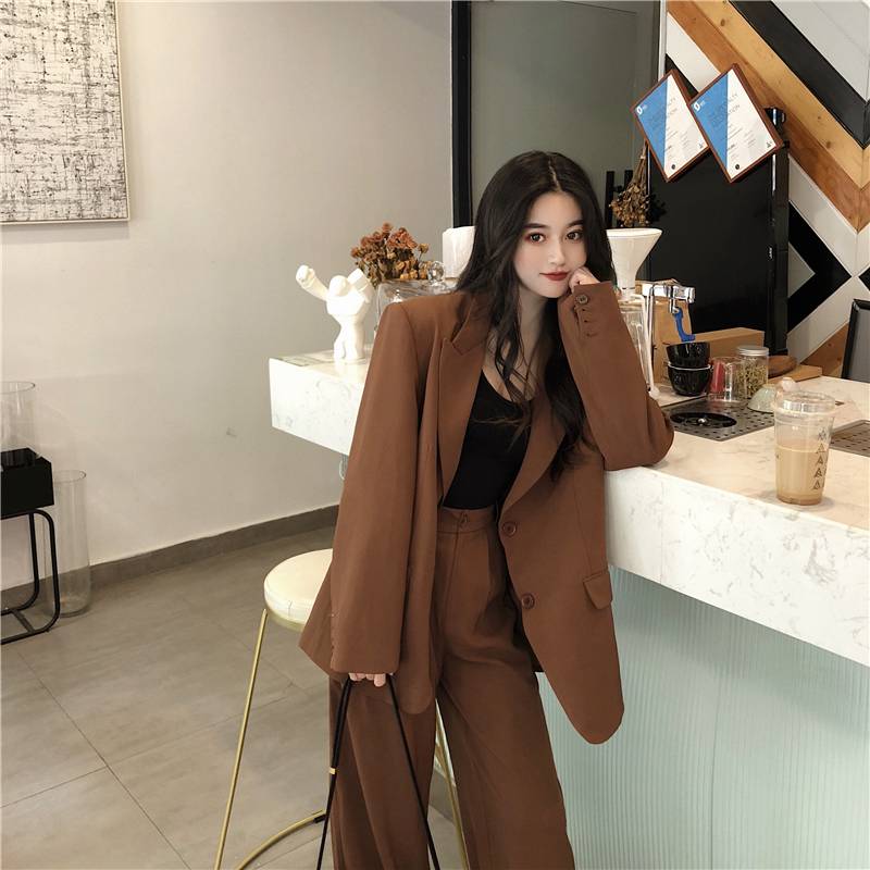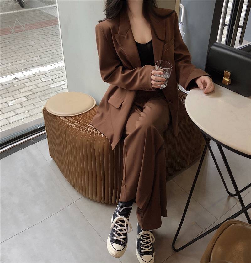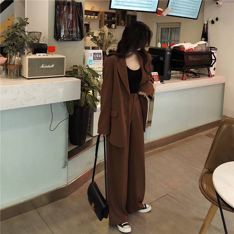 2色 セットアップ レディース ジャケット パンツ こなれ感 おしゃれ 大人カジュアル シンプル 無地 スーツ ワイドパンツ ロング丈 ハイウエスト 長袖 ブラック 黒 大人女子 カーキ