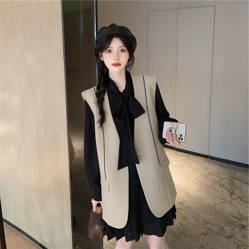 セットアップ ワンピース ベスト レディース 2点セット ミニワンピース ボウタイ 黒 大人可愛い きれいめ カジュアル ツーピース 春 秋 ブラック ホワイト 襟付き ボタン シングルブレス 白