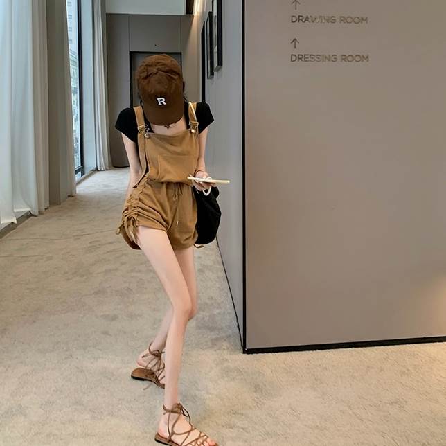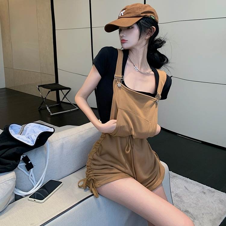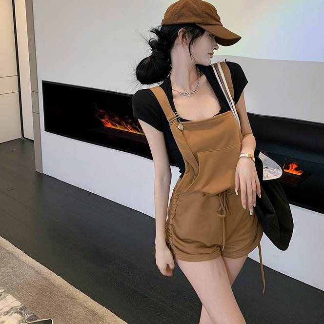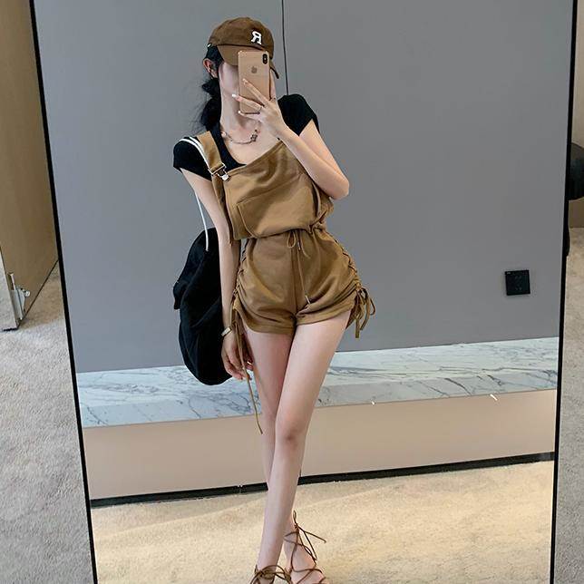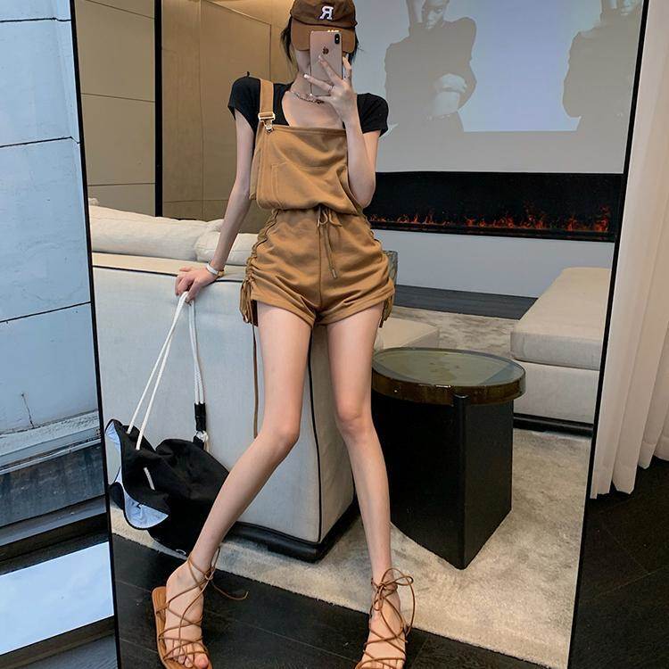 2色 ボトムス オーバーオール ショー オールインワン サロペット 新作 ブラック カーキ